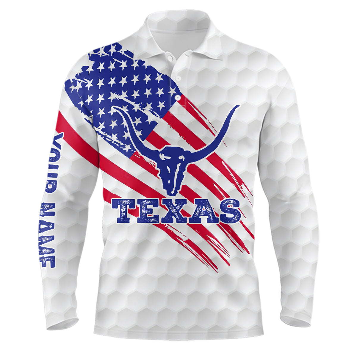 Texas Flag Longhorn Mens Golf Polo Shirts Custom Patriotic Golf Shirts For Men Golf Gifts LDT0258