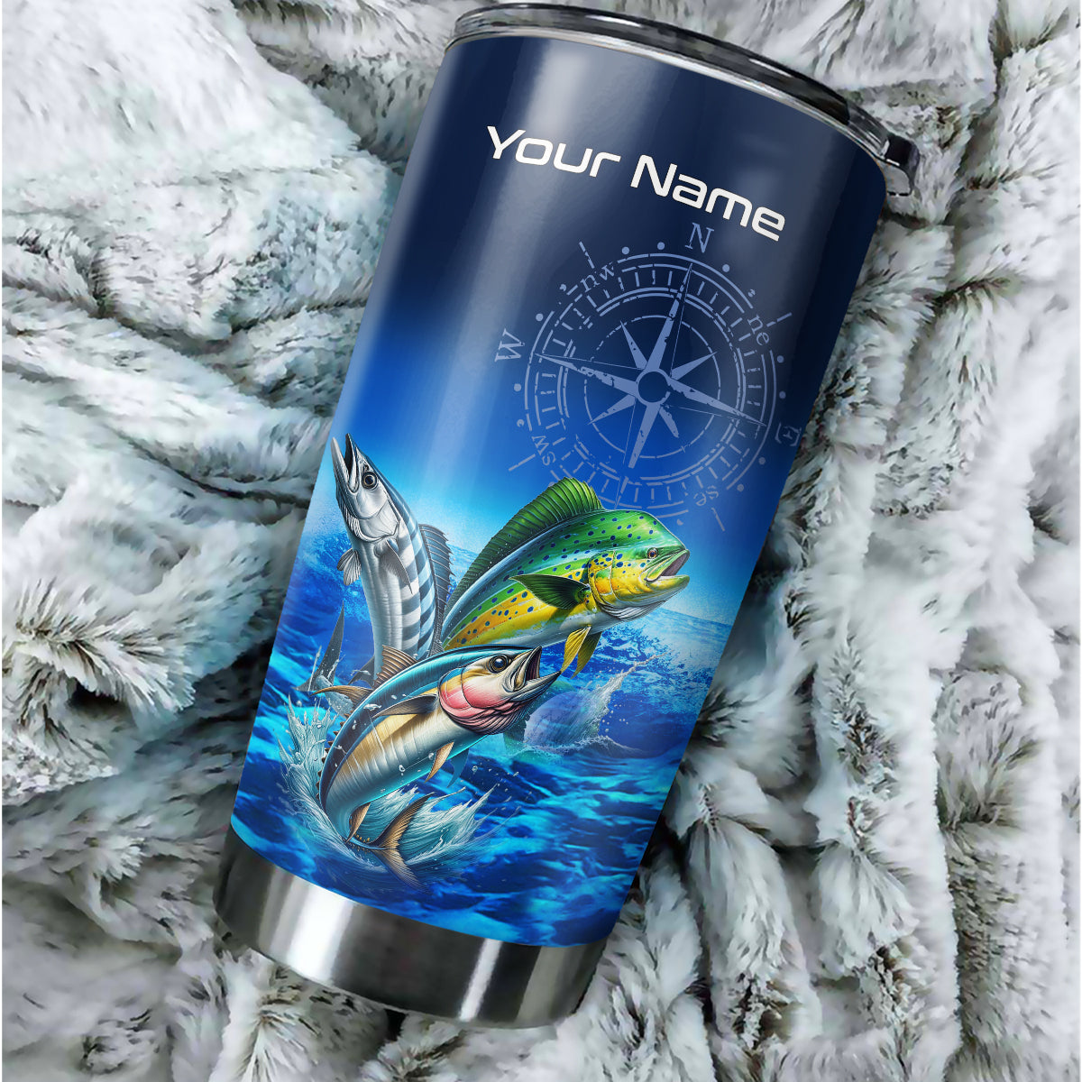 Personalized Mahi Mahi, Wahoo, Tuna Blue Fishing offshore Tumbler Cup custom name gift for fisherman NQS9923