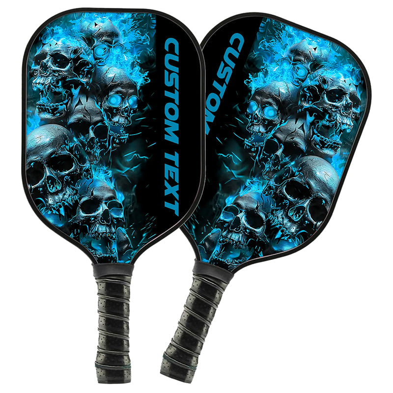 Blue Flame Custom Skull Pickleball Paddle For Team, Halloween Pickleball Gifts For Men And Women IPHW7247