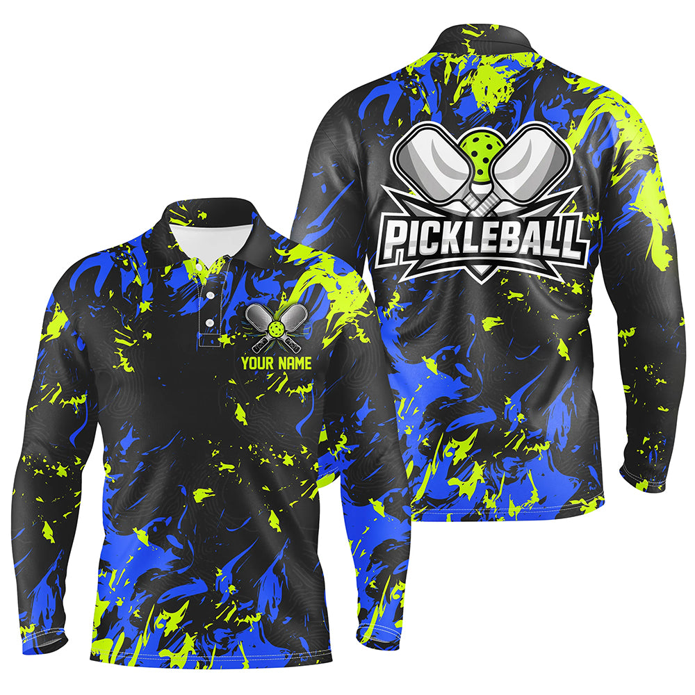 Green And Blue Custom Pickleball Team Shirts, Custom Pickleball Polo Shirts For Men IPHW6917