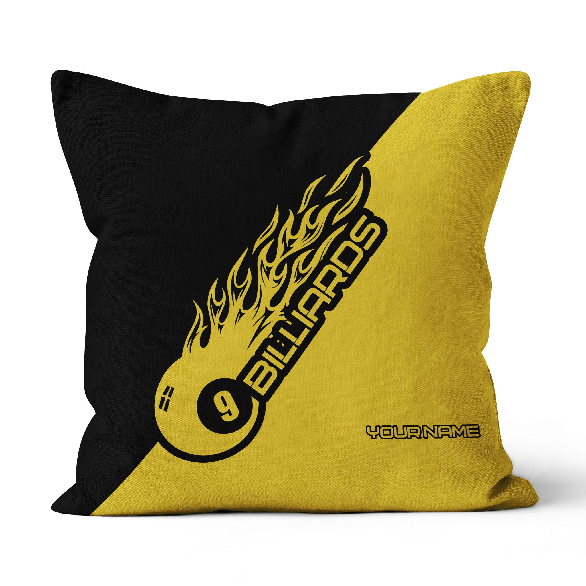 Black Yellow 9 Ball Billiard Pillow Custom Name Pool Gifts Throw Pillow TDM0794