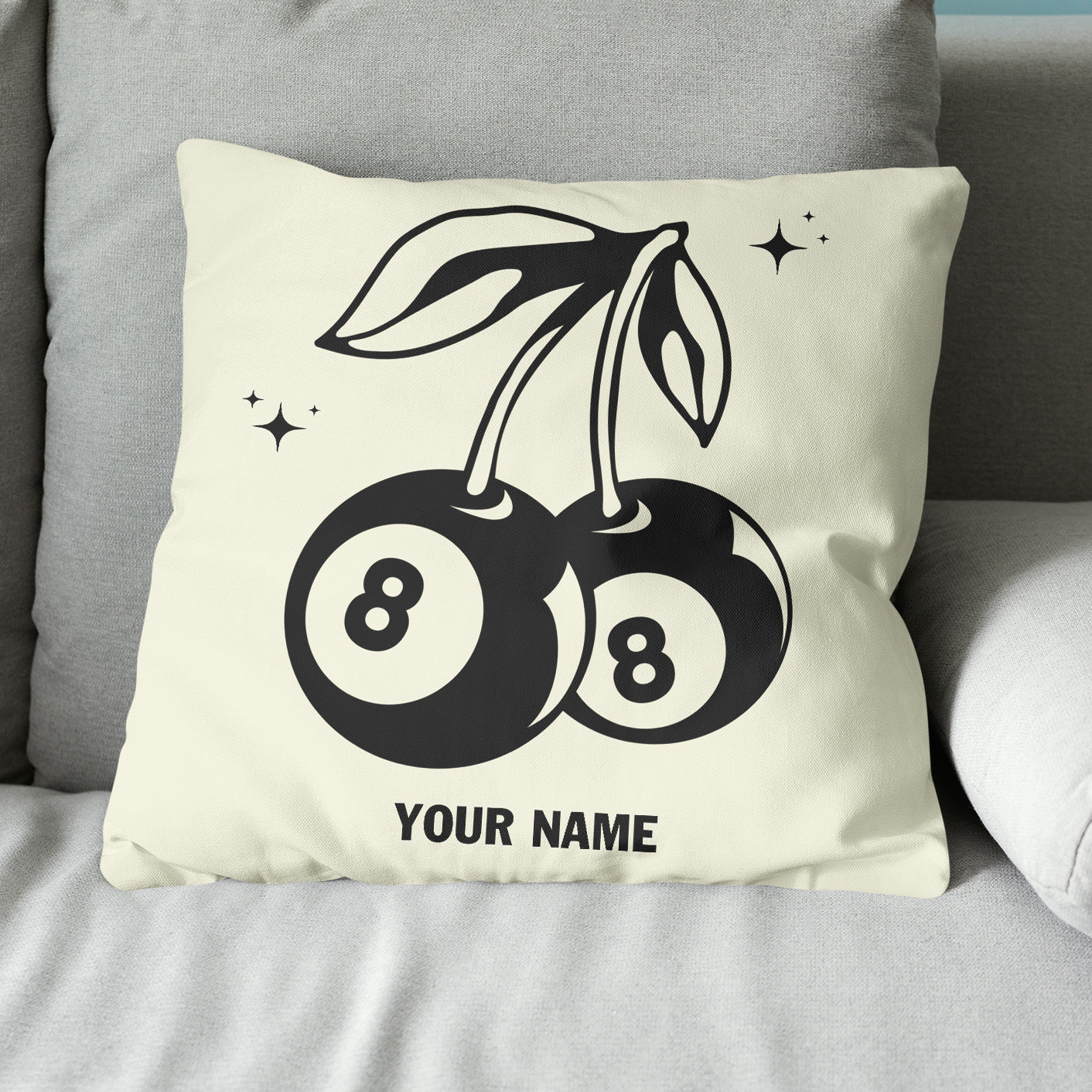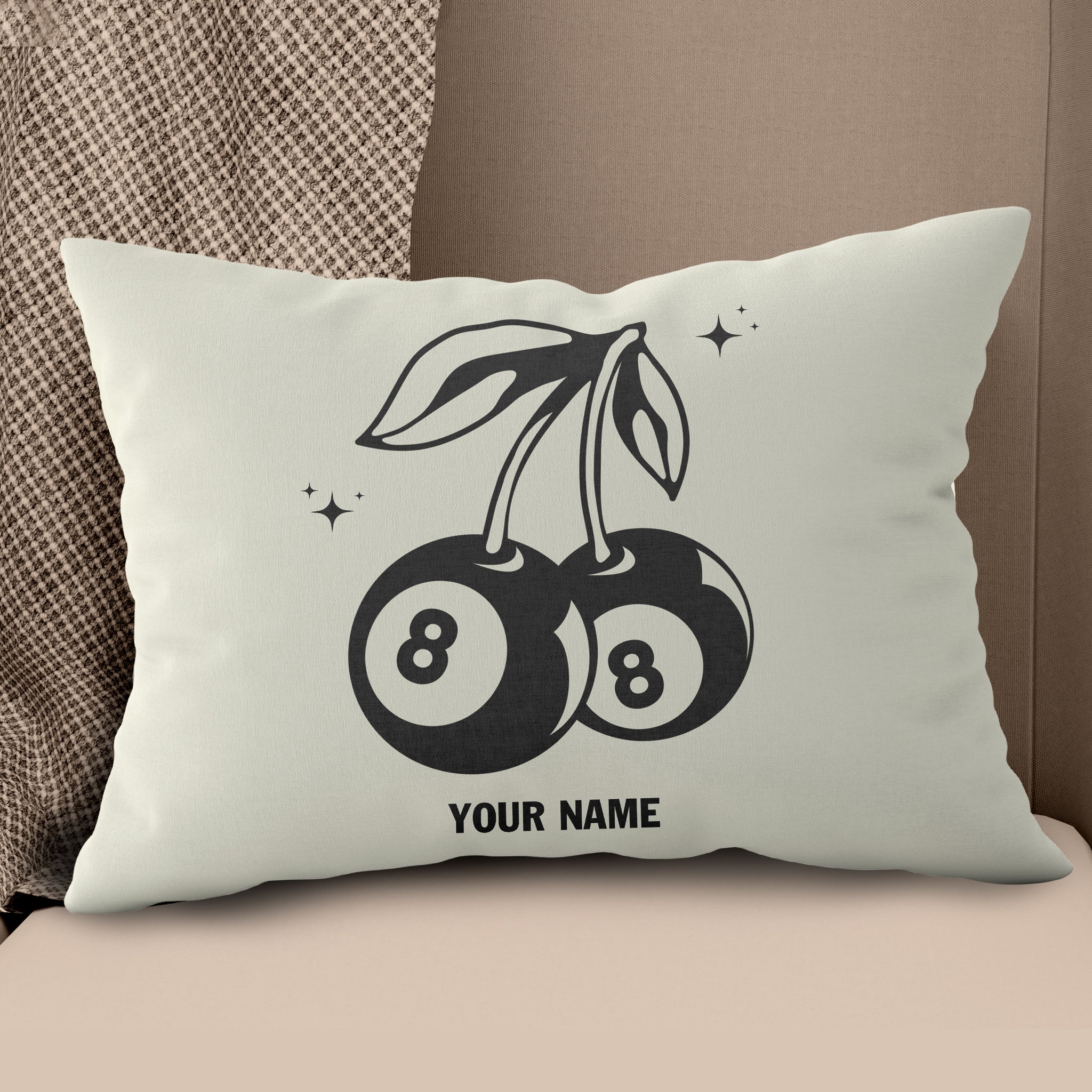 Personalized 8 Ball Cherry Billiards Pillows Custom Beige White Pillow TDM0742
