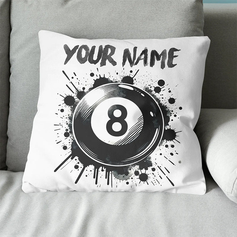 Personalized 8 Ball Pool White Pillow Custom Billiard Throw Pillows TDM0810