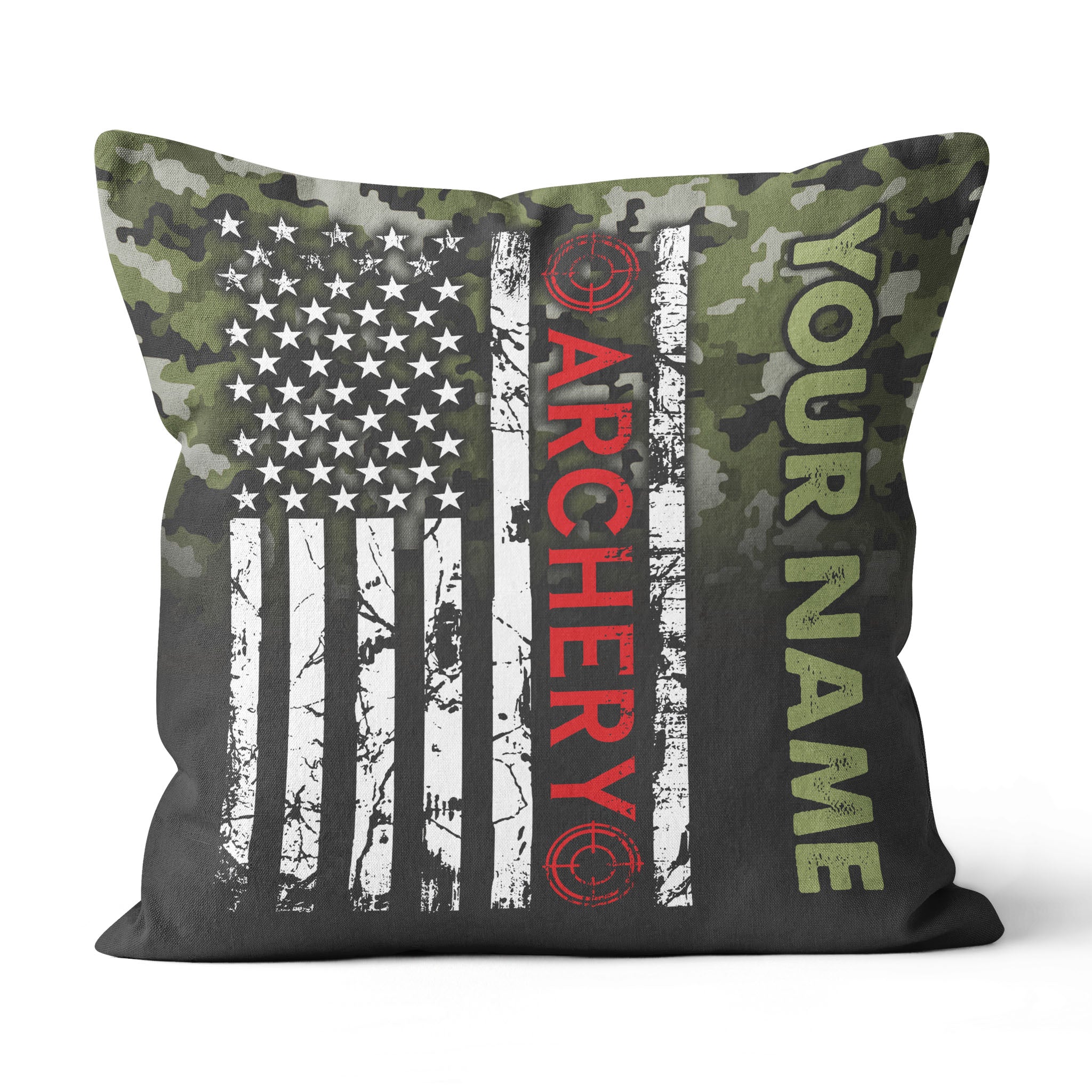 Personalized Green Camouflage US Flag Archery Pillows Best Archery Gifts VHM0849