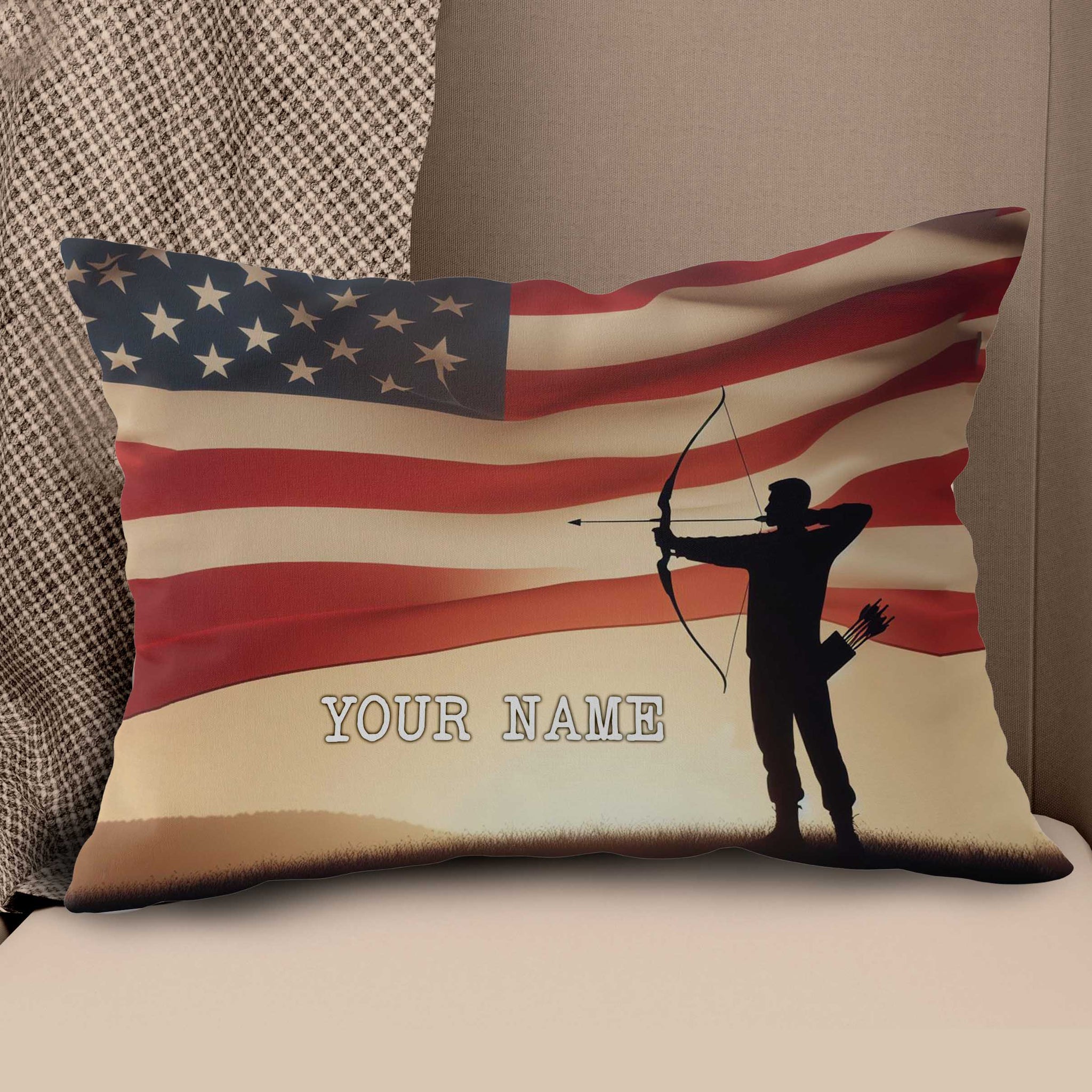 Personalized US Flag Men Player Archery Pillow, Gifts For Archery Lovers VHM0906
