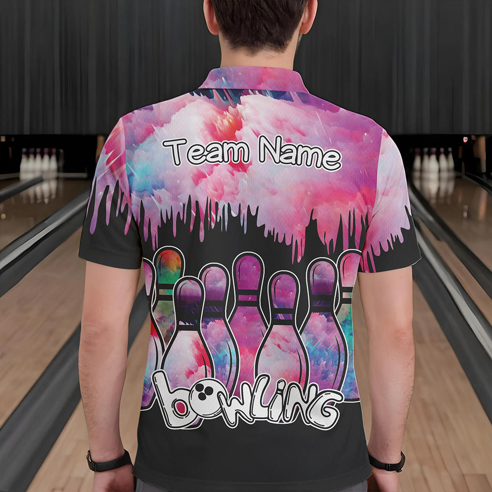 Black and Pink watercolor Bowling Polo, Quarter Zip Shirts For Men Custom Bowling Jersey Team Outfit NQS9593