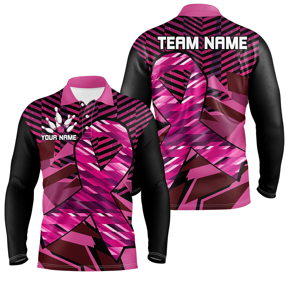 Breast Cancer Awareness black and Pink ribbons custom Bowing Shirts For Men, team bowling jerseys NQS8126