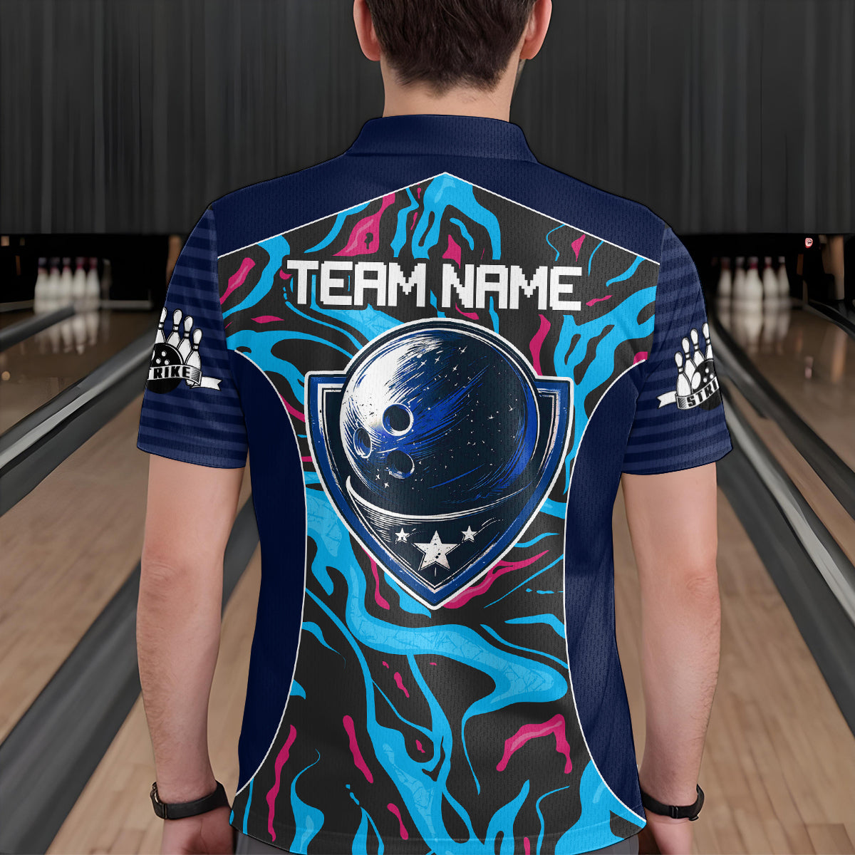 Custom Camo Pink & Teal Bowling Jersey Bowling Team League Polo Shirt for Men Women QZT665