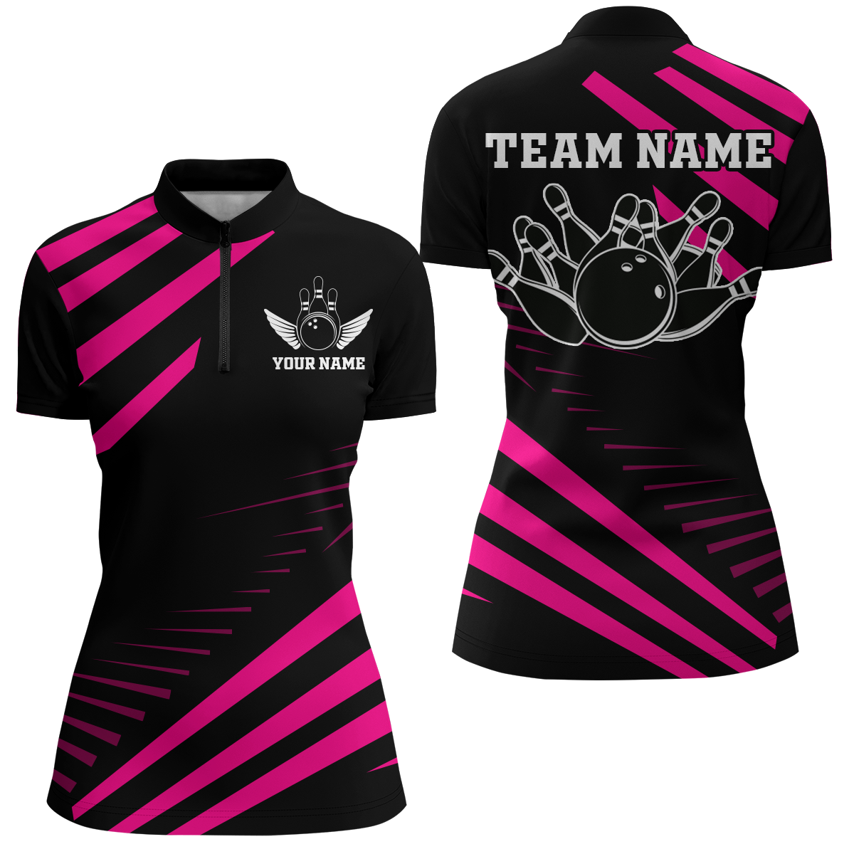 Pink Bowling Jersey Men And Women Custom Bowling Team Shirts Unisex Bowling Polo Quarter-zip CP26