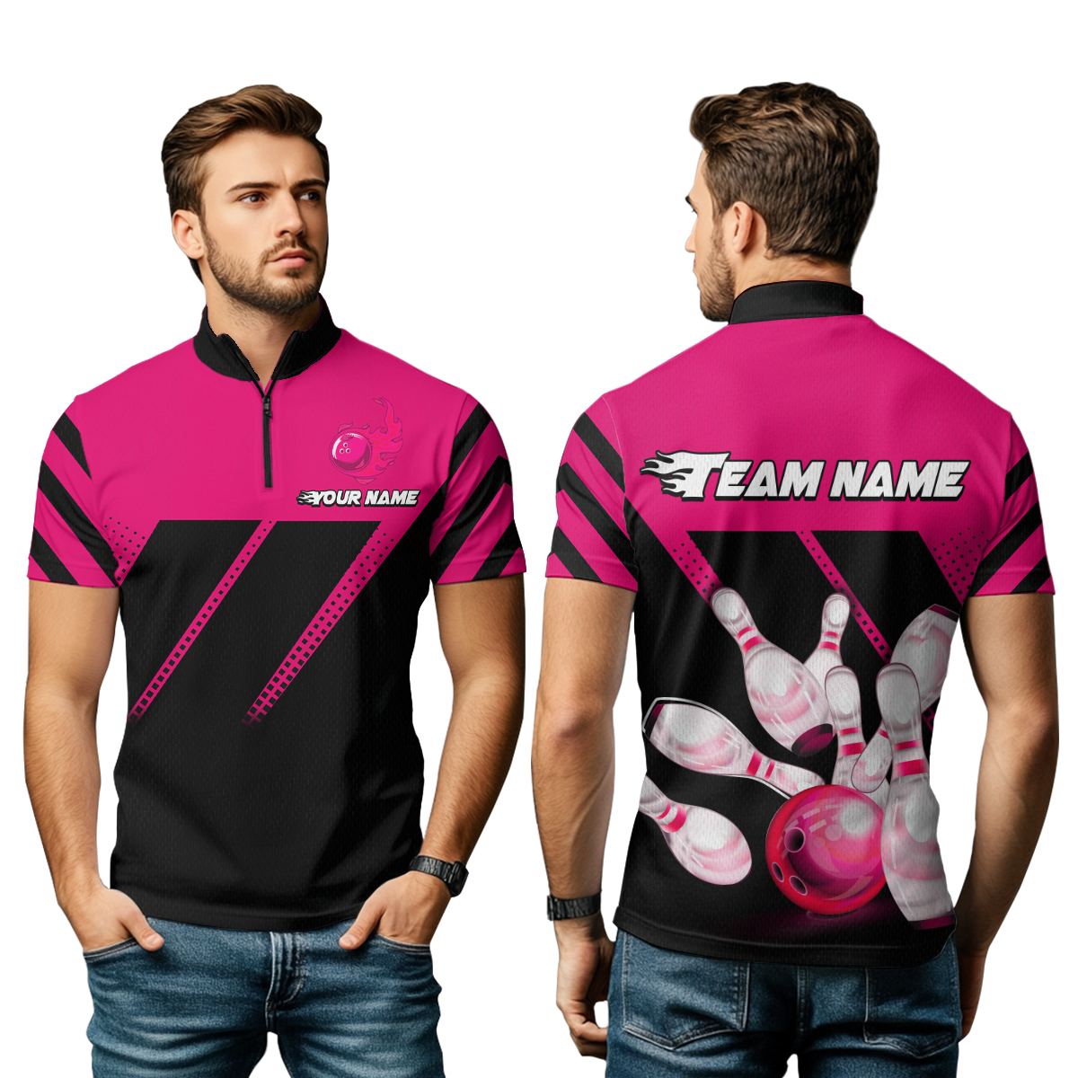 Pink Bowling Shirt Custom Bowling Jersey for Men Women Bowling Polo&1/4 Zip Shirts MBL51