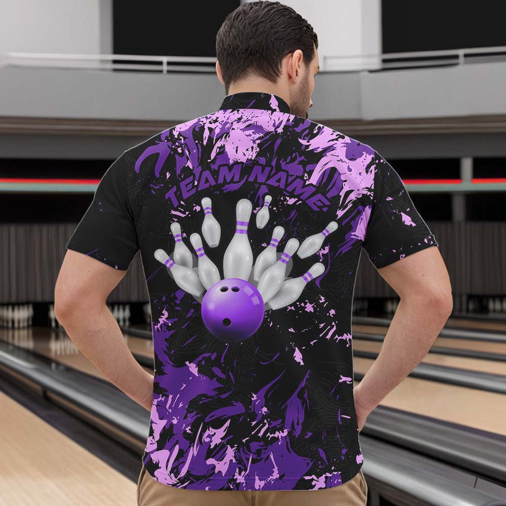 Black, Purple And Pink Custom Bowling Team Men Quarter-Zip Shirts, Bowling Ball And Pin Jerseys IPHW8796