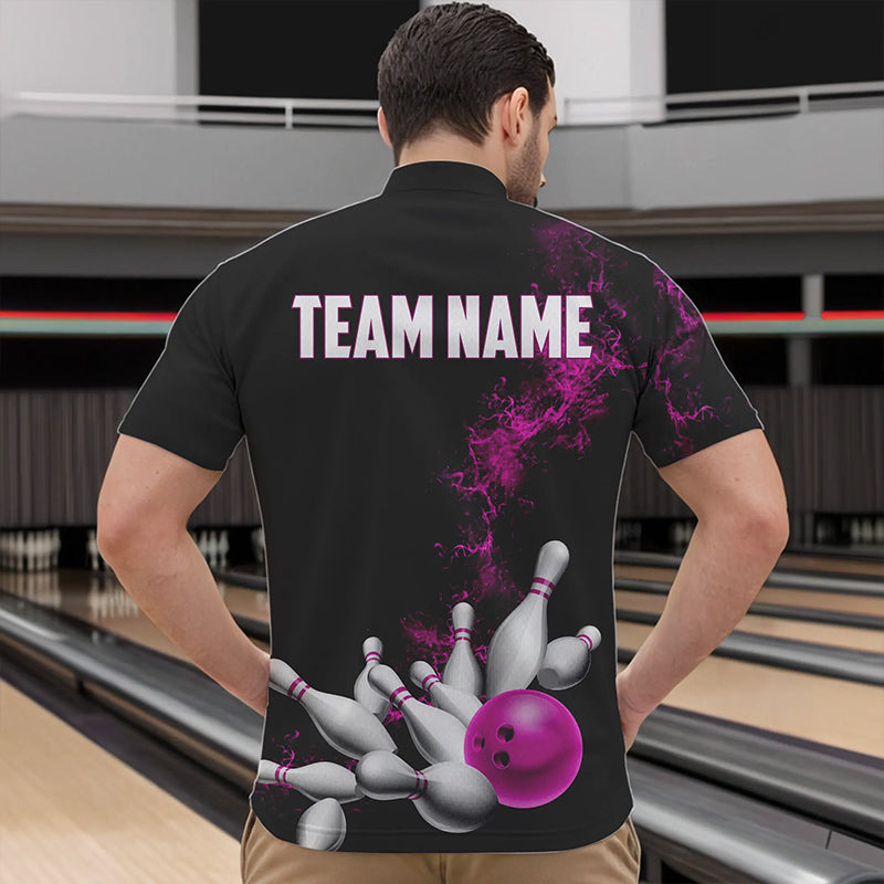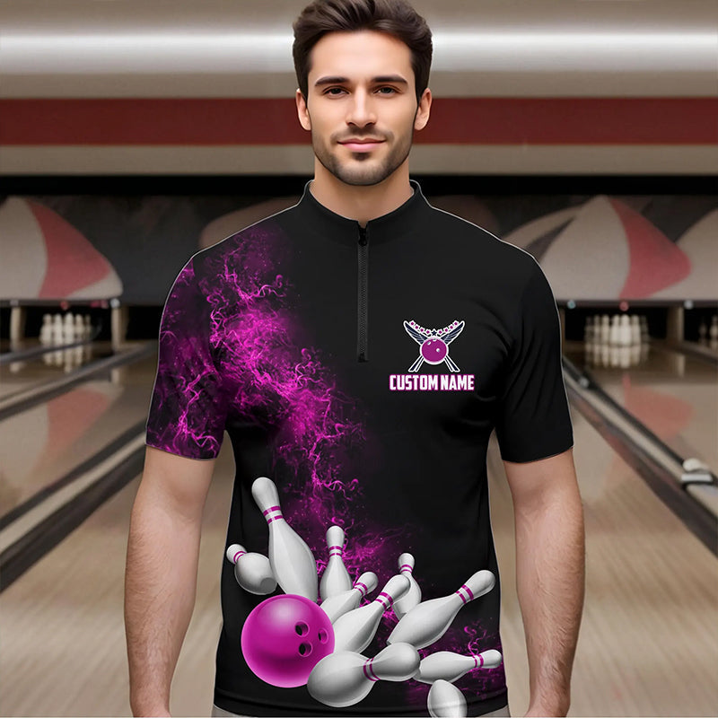 Custom Pink Strike Bowling Quarter-Zip Shirts For Men Bowling Team Jerseys Bowling League Shirts IPHW8880