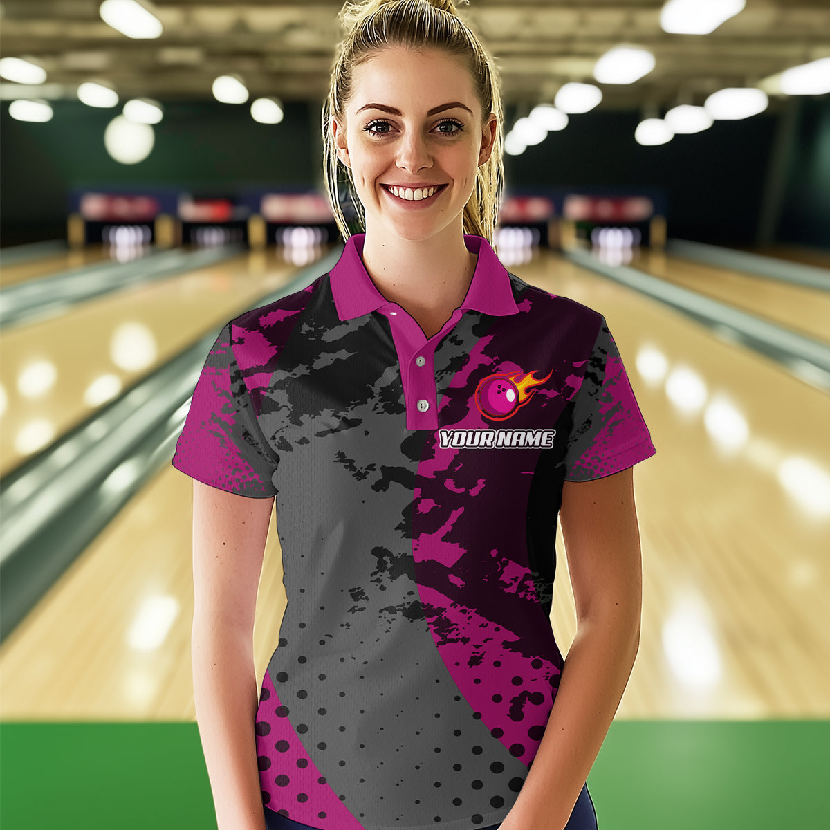 Fire Bowling Shirt Custom Pink Bowling Jersey for Men Women with Team Name MBL63