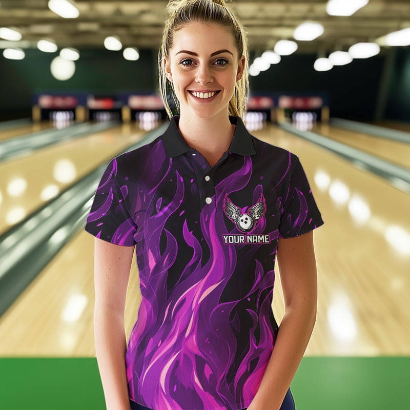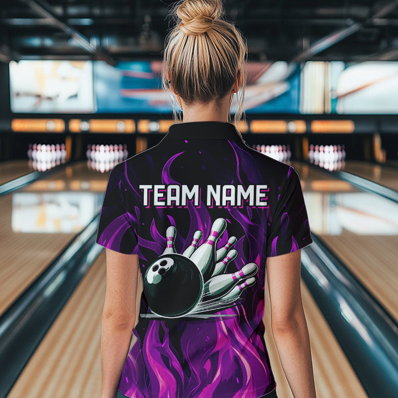 Women bowling Polo, Quarter Zip shirts Custom Pink Flame Bowling Team Jersey, gift for team Bowlers NQS9603