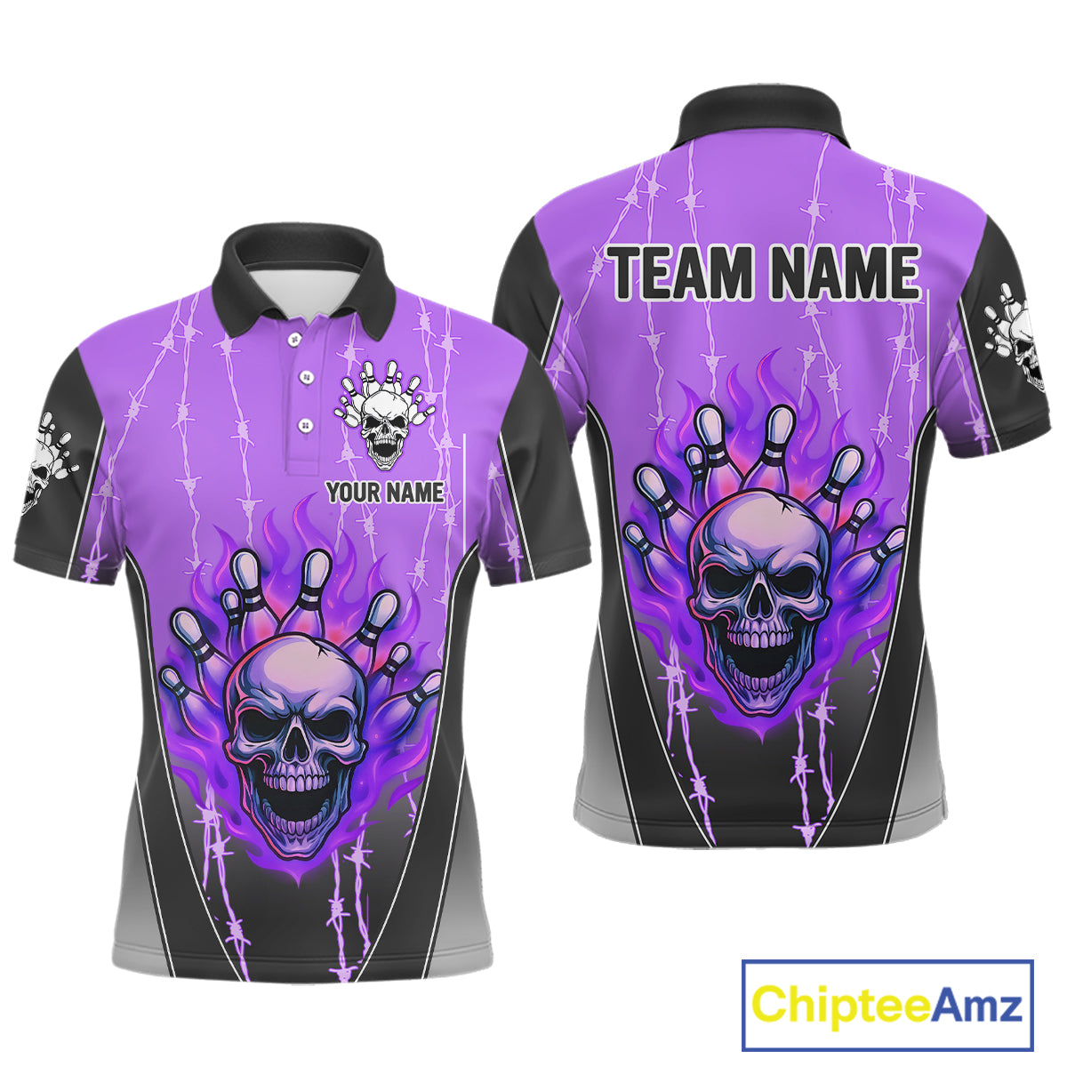 Black and purple flame skull Bowling Polo, 1/4 Zip Shirt for men Custom Team Bowling League Jersey NQS10204