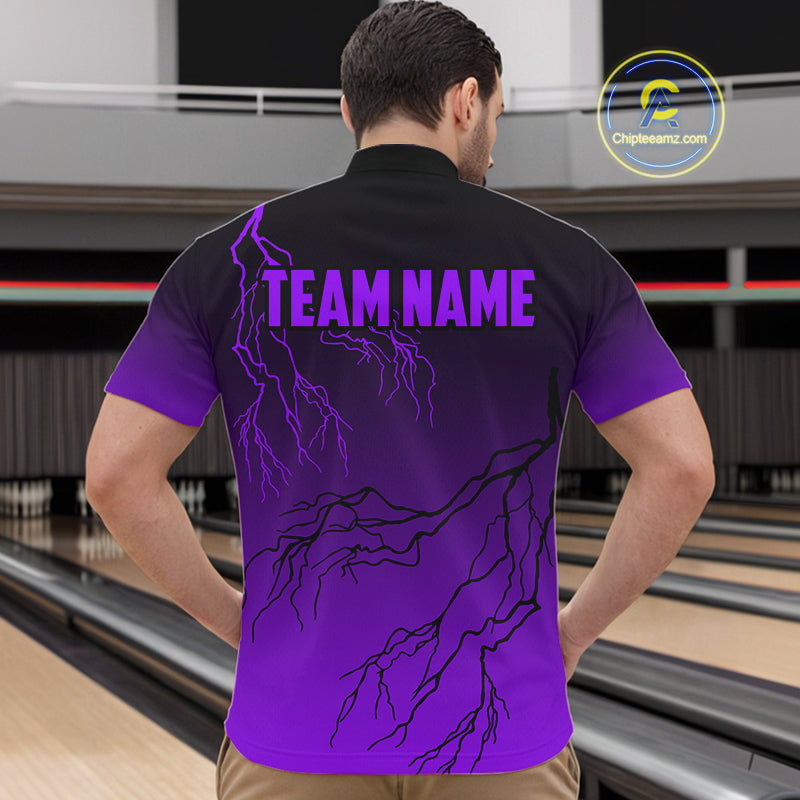 Black and Purple gradient Lightning thunder storm Bowling shirts for Men Custom Bowling Team Jerseys NQS10136