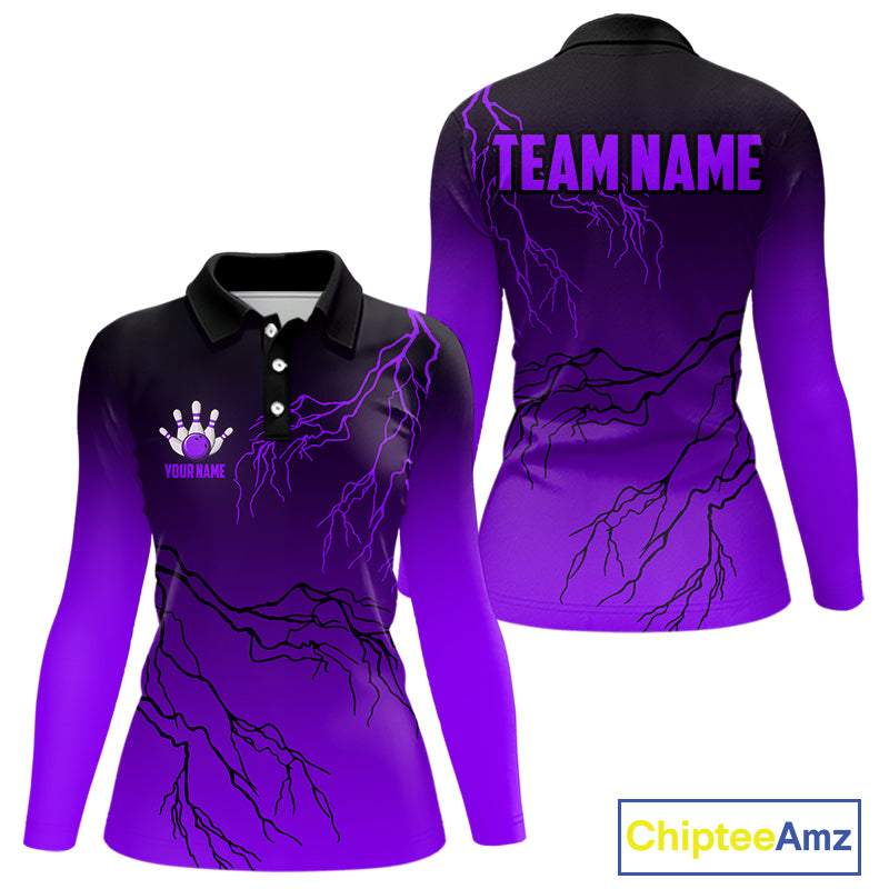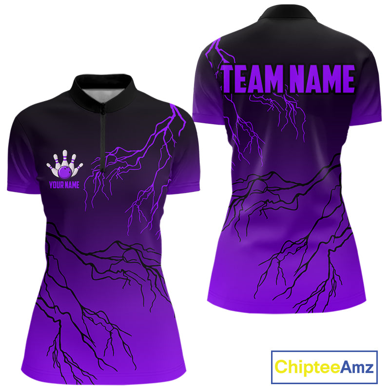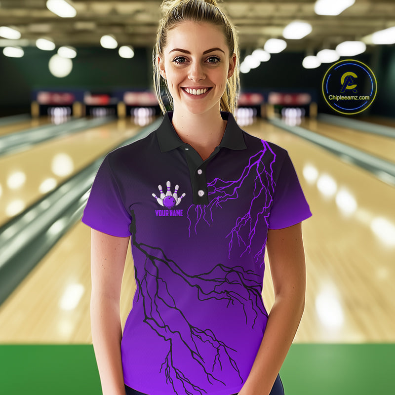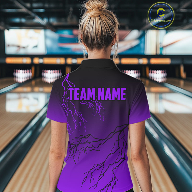 Black and Purple gradient Lightning thunder storm Bowling shirts for Women Custom Bowling Team Jersey NQS10136