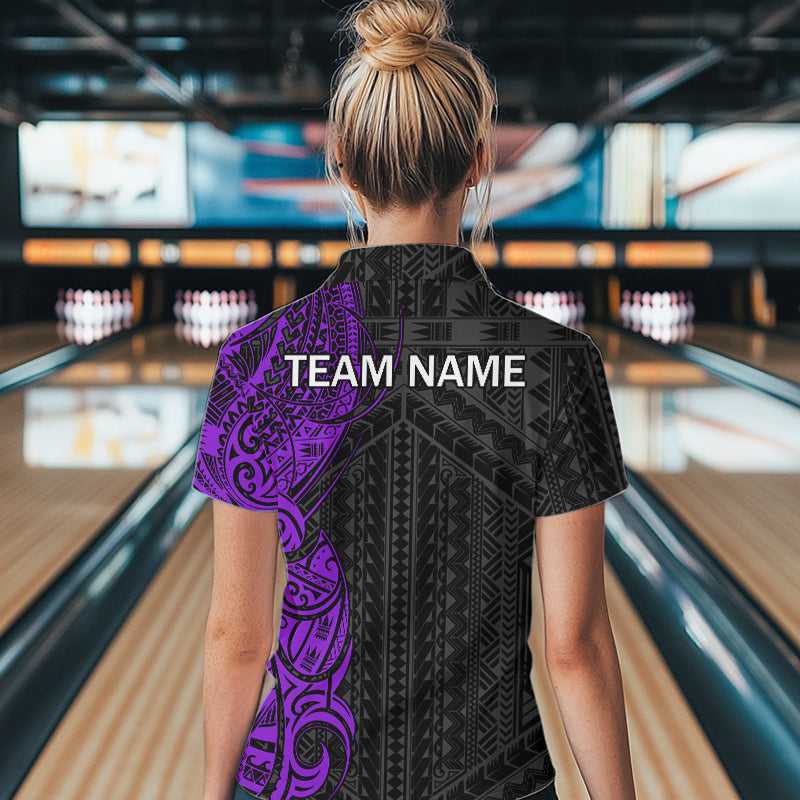Black and Purple Tribal pattern Womens Bowling Shirts Custom Bowling outfit ladies Team bowling jersey NQS9740