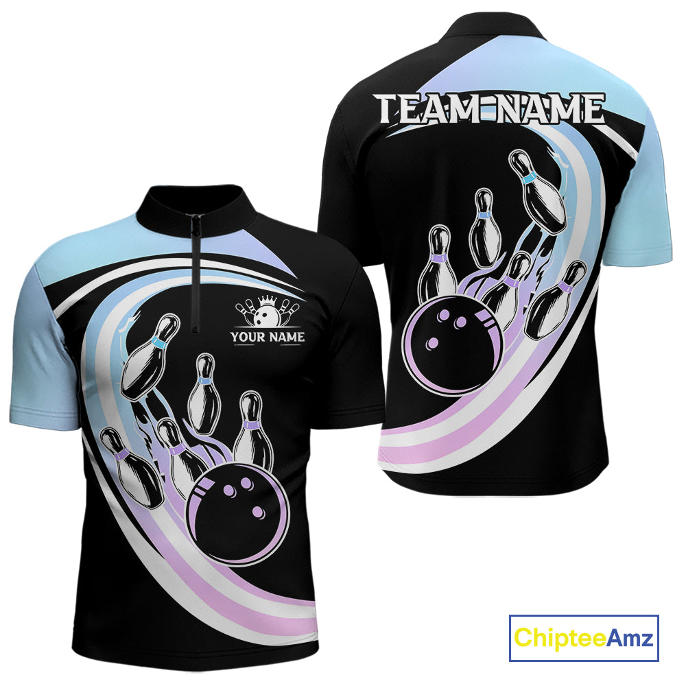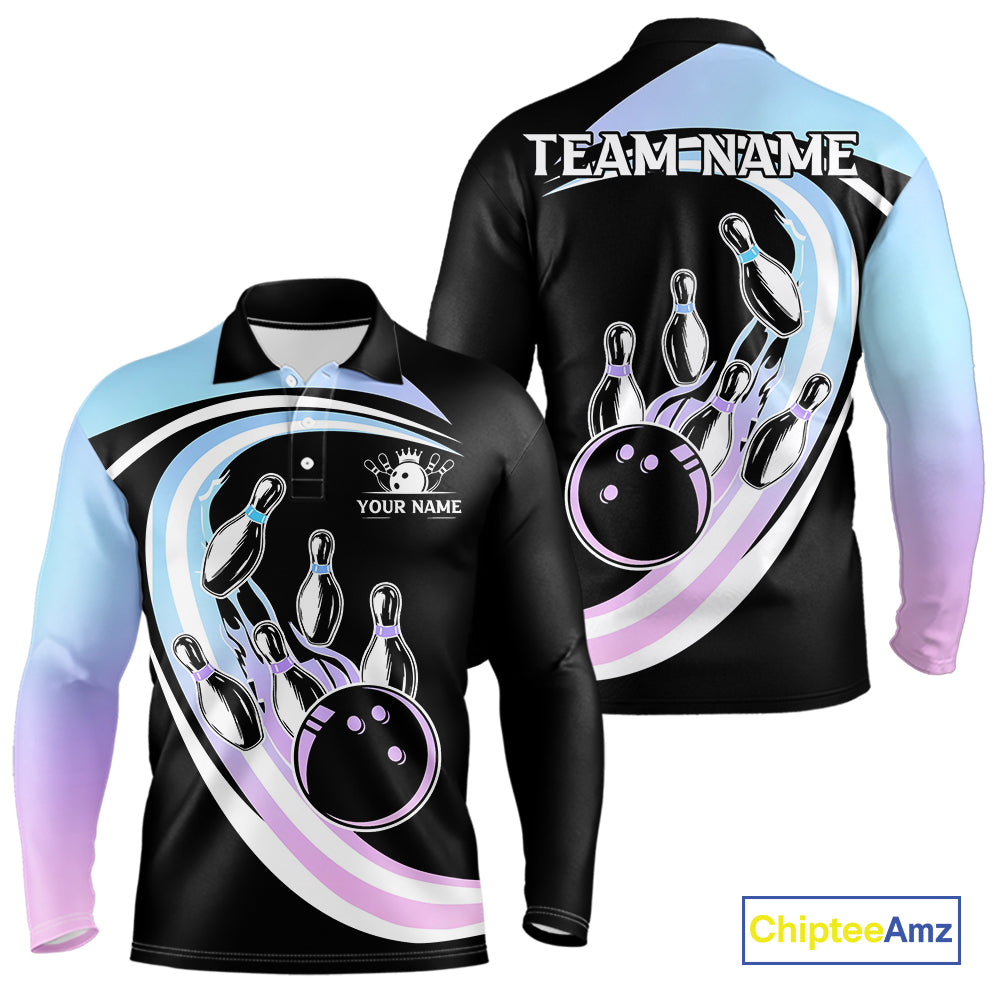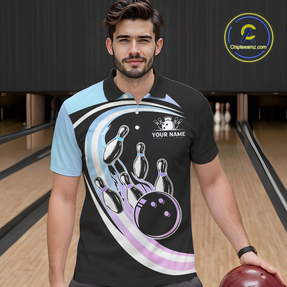 Blue Purple Gradient Bowling Shirts For Men Custom Bowling Team League Jersey, Gift For Bowler NQS10432