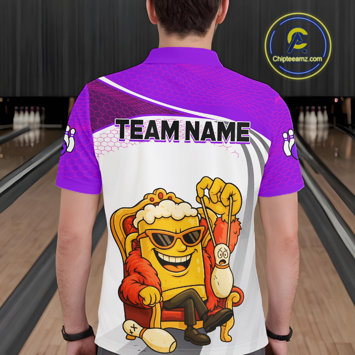 Custom Funny Purple Beer Polo Bowling Team Shirt for Men Quarter-Zip Bowling Jersey Outfit QZT820