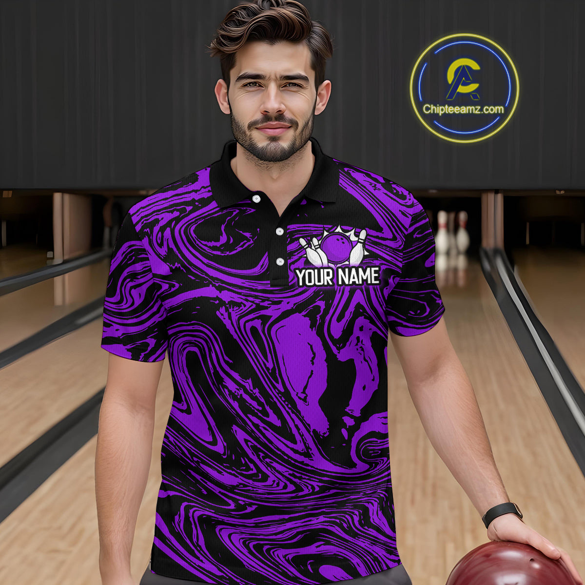 Custom Purple Bowling Men Bowling Shirt Polo & Quarter-Zip Bowling Team Jerseys HNT81