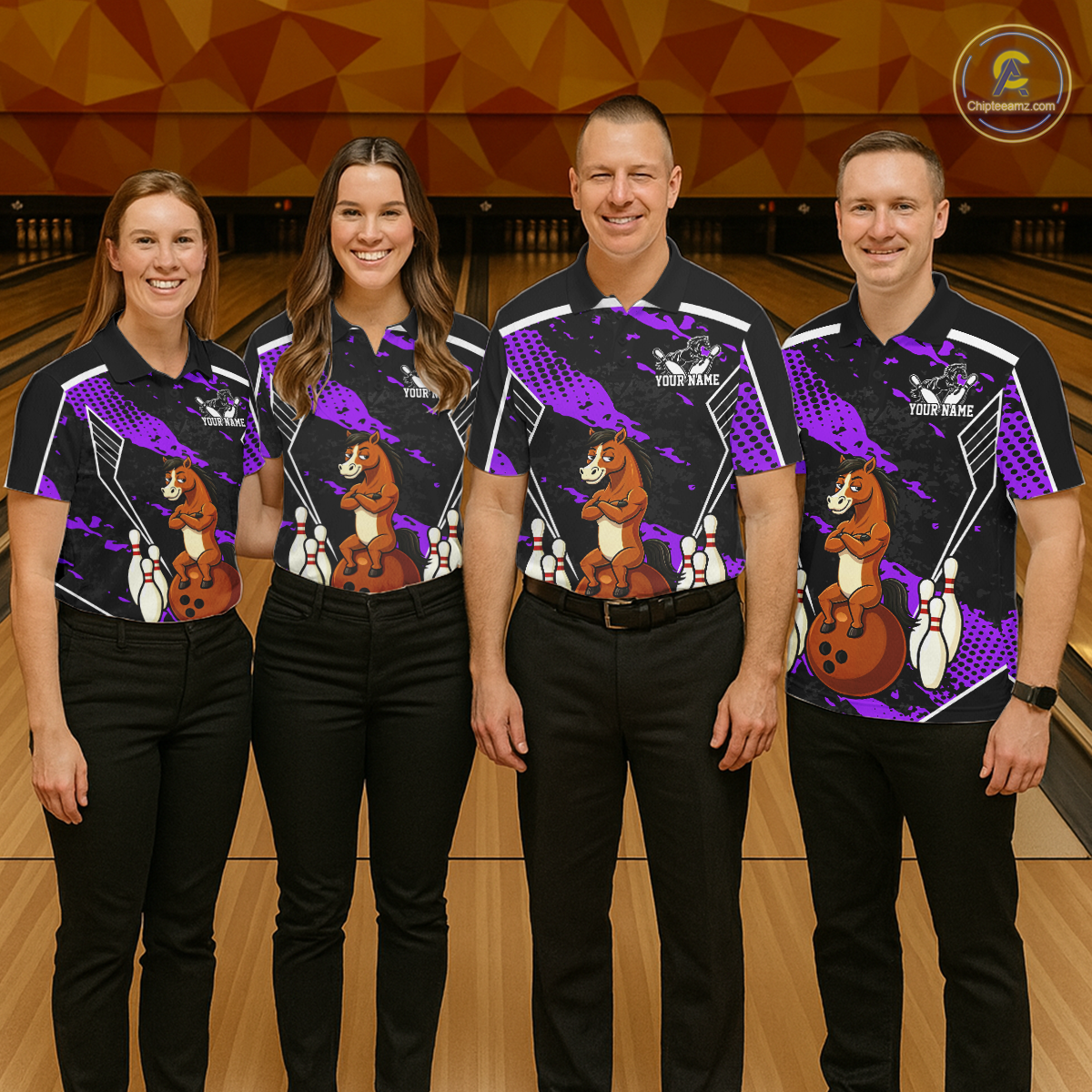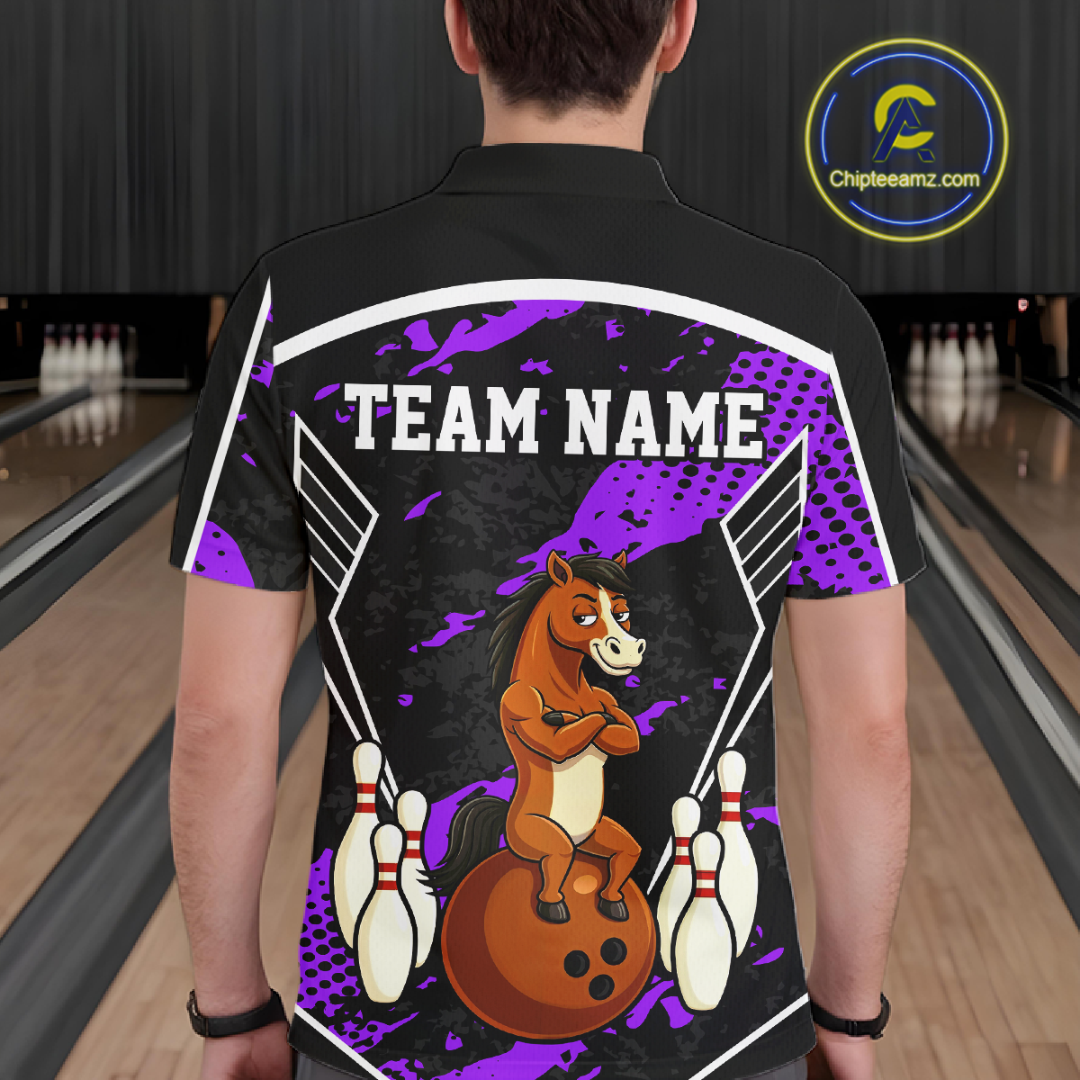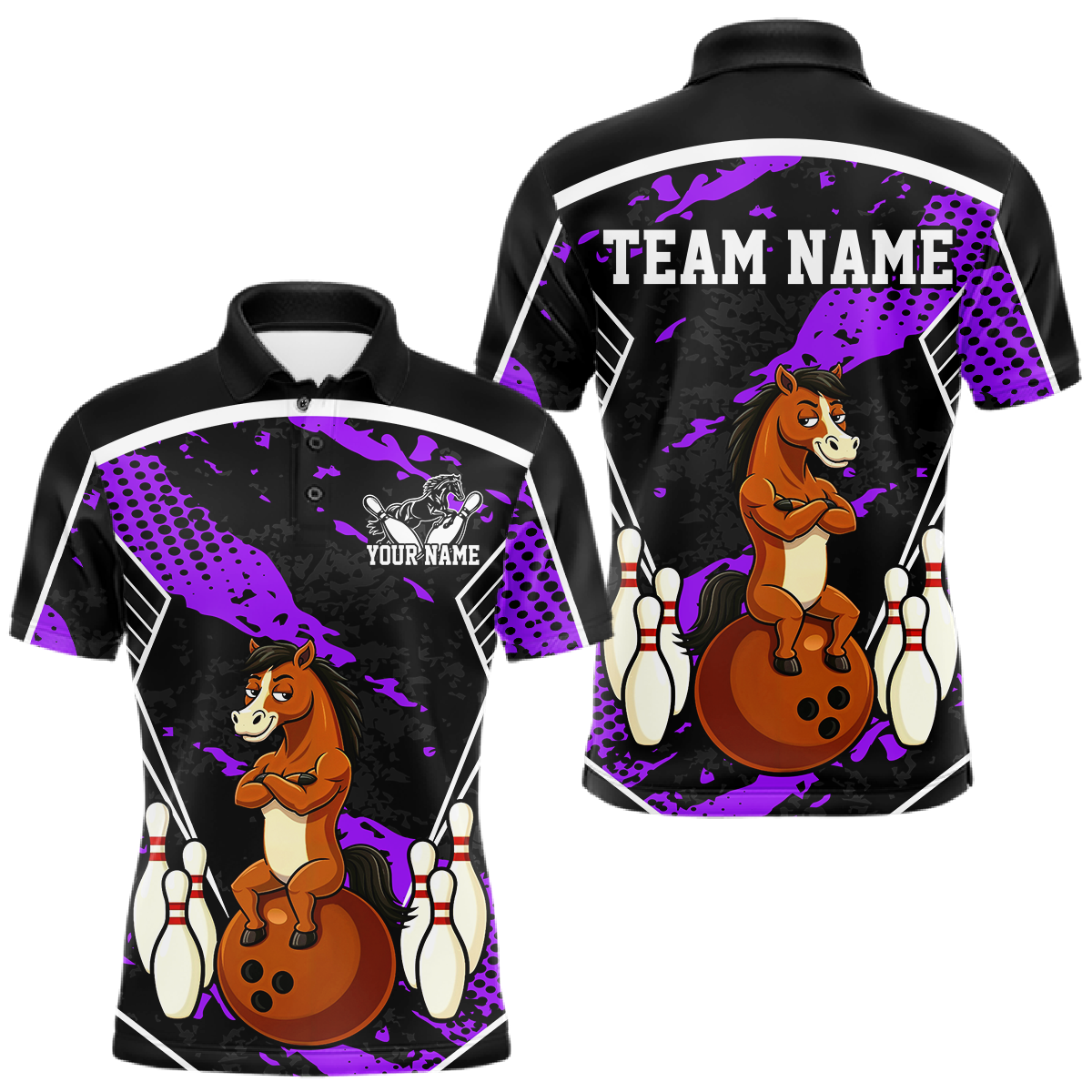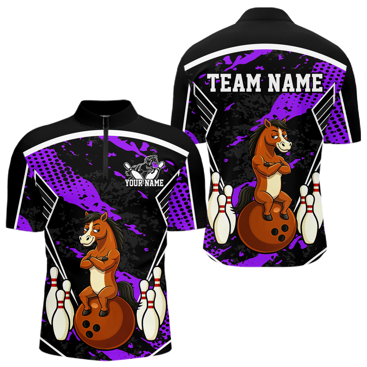 Custom Purple Funny Horse Bowling Tournament Jersey for Men Bowling Team Shirts Polo & 1/4 Zip HNT180