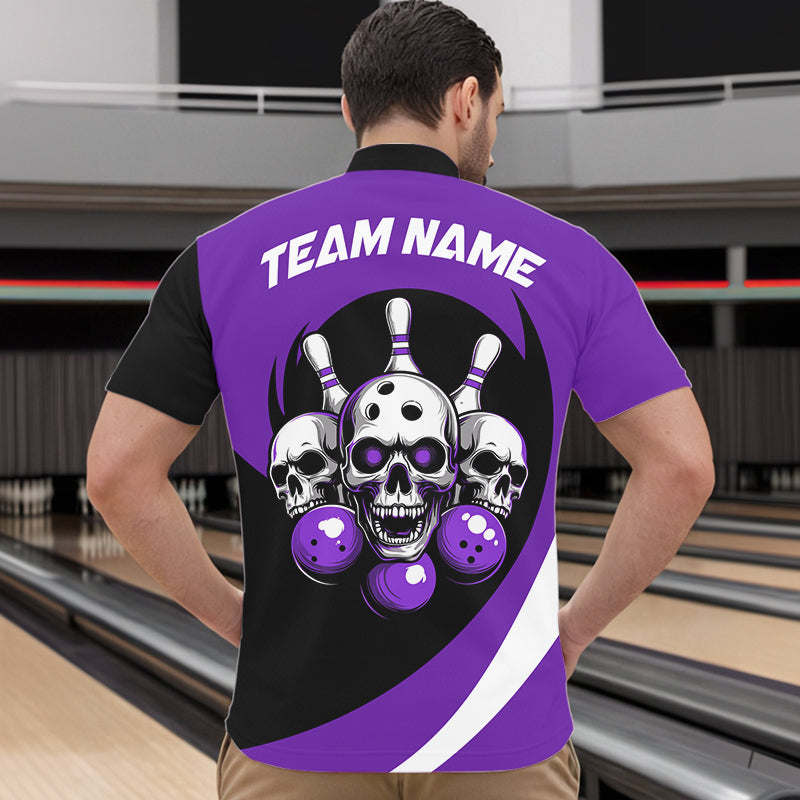 Custom Purple Skull Bowling Shirt Quarter-Zip Bowling Jersey for Men Women Bowling Outfit QZT671