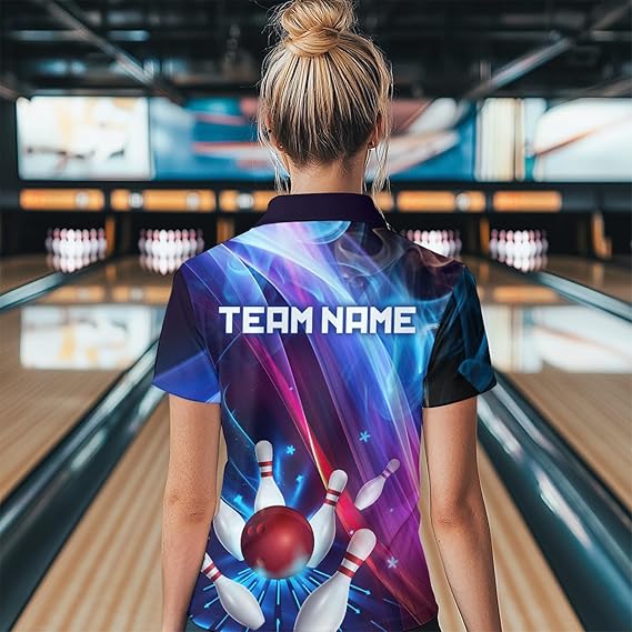 Personalized Galaxy Bowling Pins and Ball Shirt Blue & Purple Neon 1/4-Zip Bowling Team League QZT664