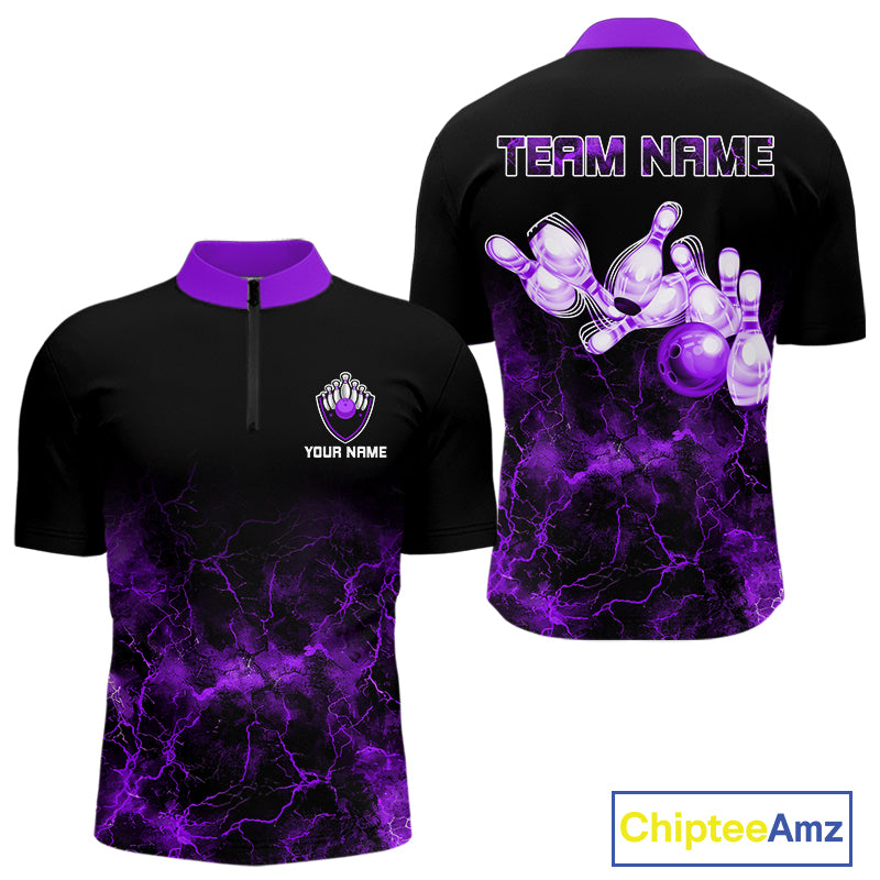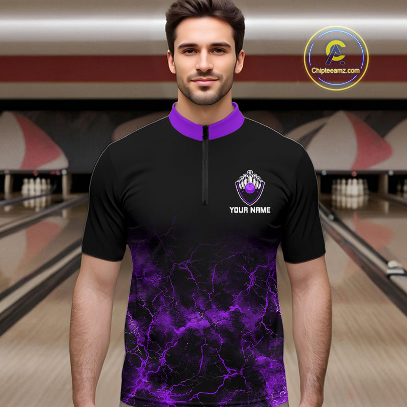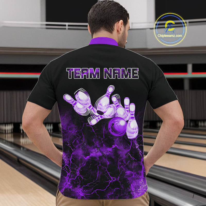 Personalized Men's bowling shirts Purple lightning Bowling Ball Pins bowling jerseys for Bowler NQS10634