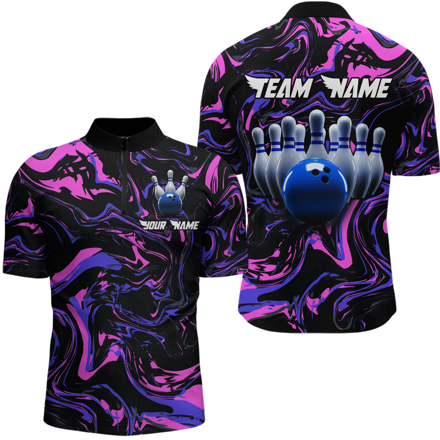Pink Purple Bowling Custom Men Bowling Shirt Polo & Quarter-Zip Bowling Team Jerseys HNT48