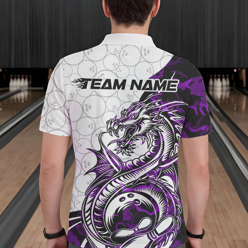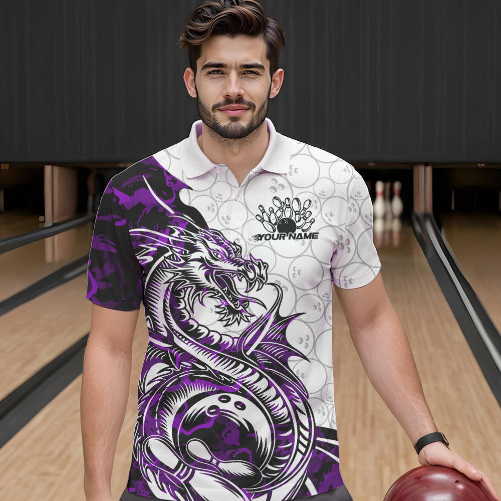 Custom Purple Camo Dragon Bowling Tattoo Men Polo Shirts, Dragon Bowling League Team Shirt IPHW8885