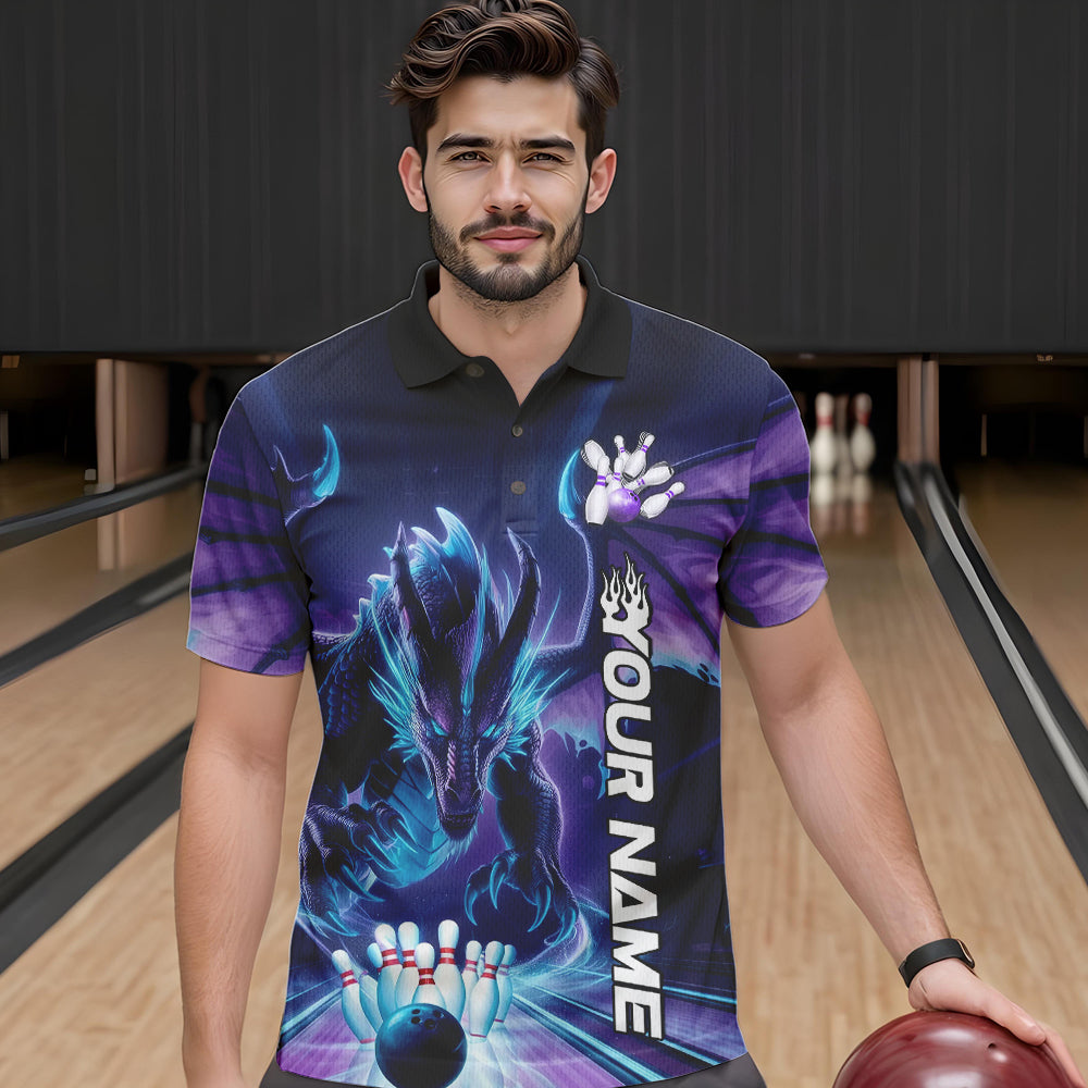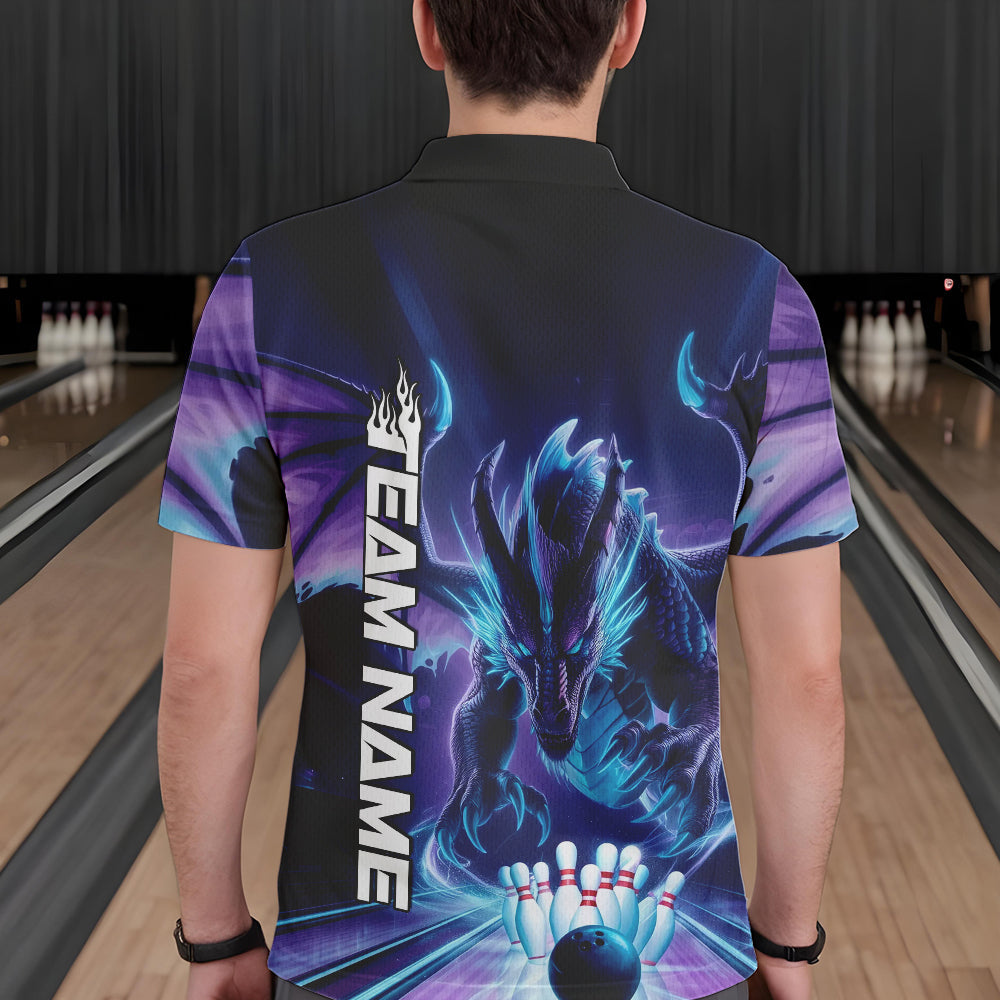 Custom Blue And Purple Dragon Bowling Polo Shirts For Men, Dragon Bowling League Shirt IPHW8958