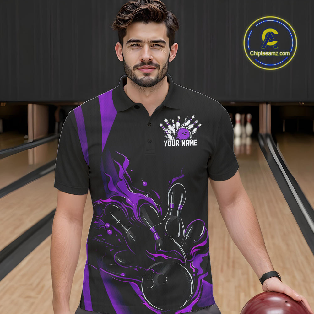 Custom Purple Flame Bowling Polo Shirts For Men, Striking Fire Jerseys Team Uniform IPHW9087
