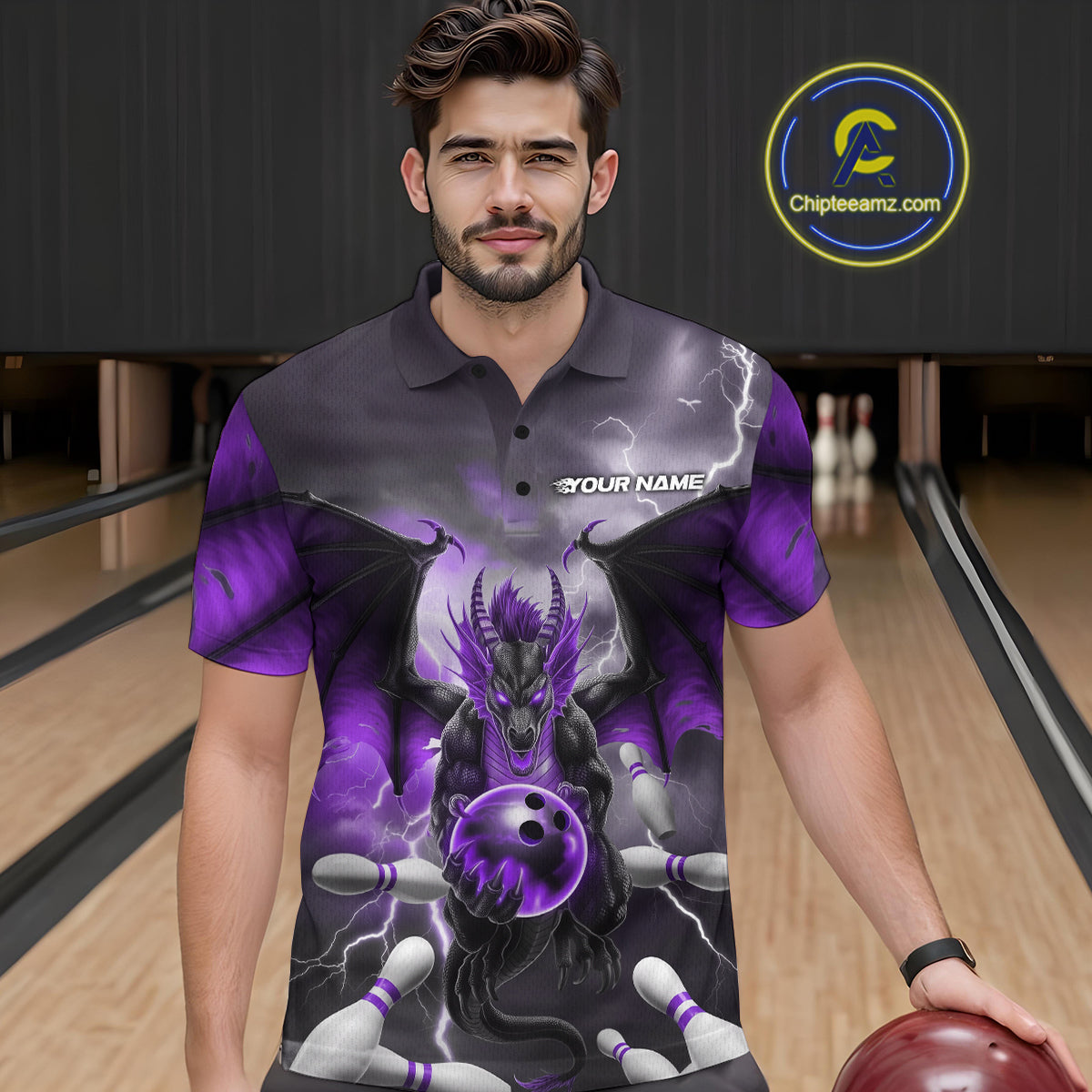 Custom Purple Thunder Lightning Dragon Bowling Polo Shirts For Men, Team Uniform IPHW9104