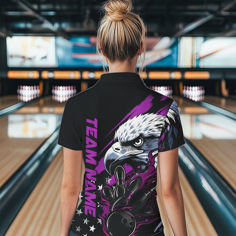 Black And Purple American Flag Eagle Custom Patriotic Flame Bowling Team Women Polo Shirts IPHW8850