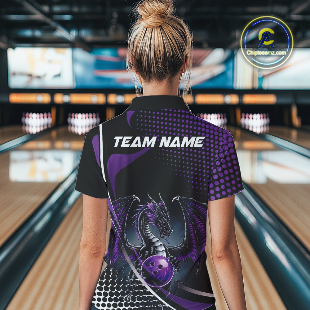 Custom Purple Dragon Bowling Jerseys, Mystical Bowling Team Uniform Polo Shirts For Women IPHW9534