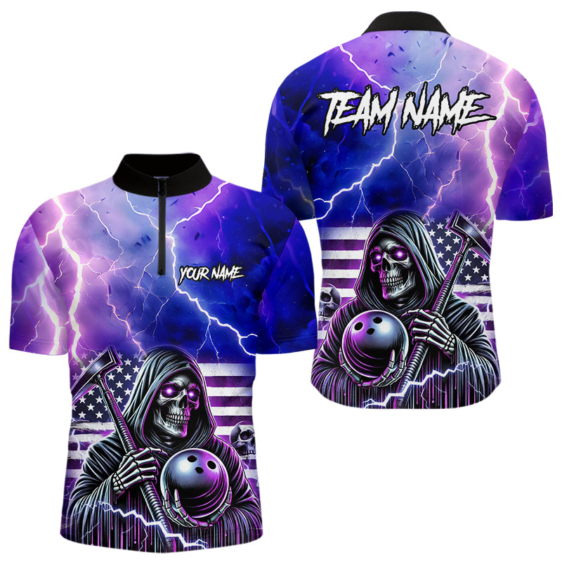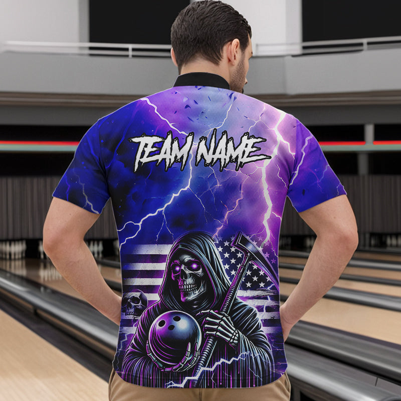 Purple American Flag Lightning Thunder Storm Reaper Bowling Shirt For Men Custom Bowling Team Jersey NQS9732