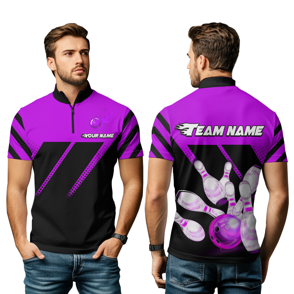 Purple Bowling Shirt Custom Bowling Jersey for Men Women Bowling Polo&1/4 Zip Shirts MBL51