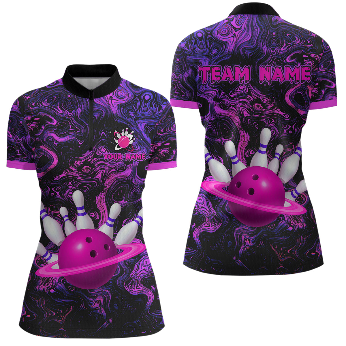 Purple Custom Bowling Shirts for Women Men Team Bowling Jersey Polo & 1/4 Zip Shirt MBL222