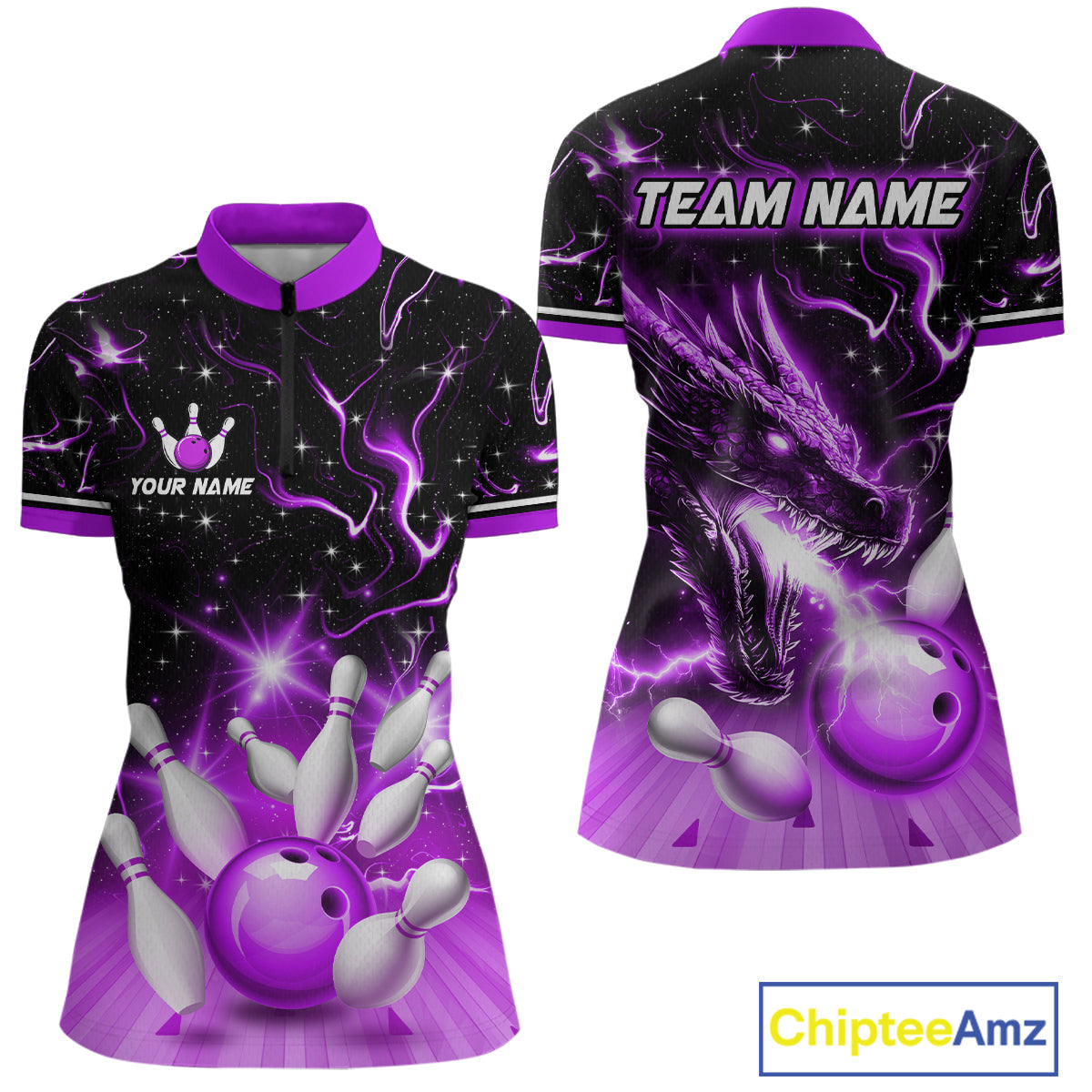 Purple Dragon Flaming Bowling Shirt for Men and Women Custom Bowling Jersey for Team MBL87