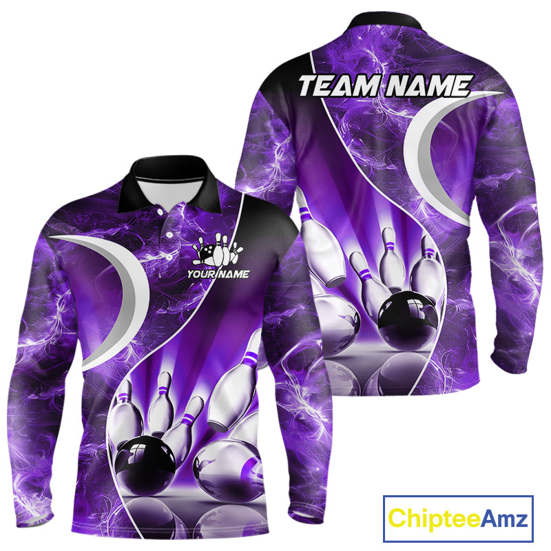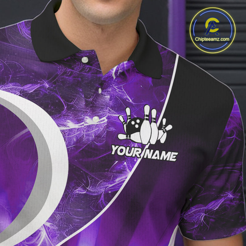 Purple Light pattern Bowling Polo, Quarter Zip shirts for men Custom Bowling Team League Jerseys NQS9948