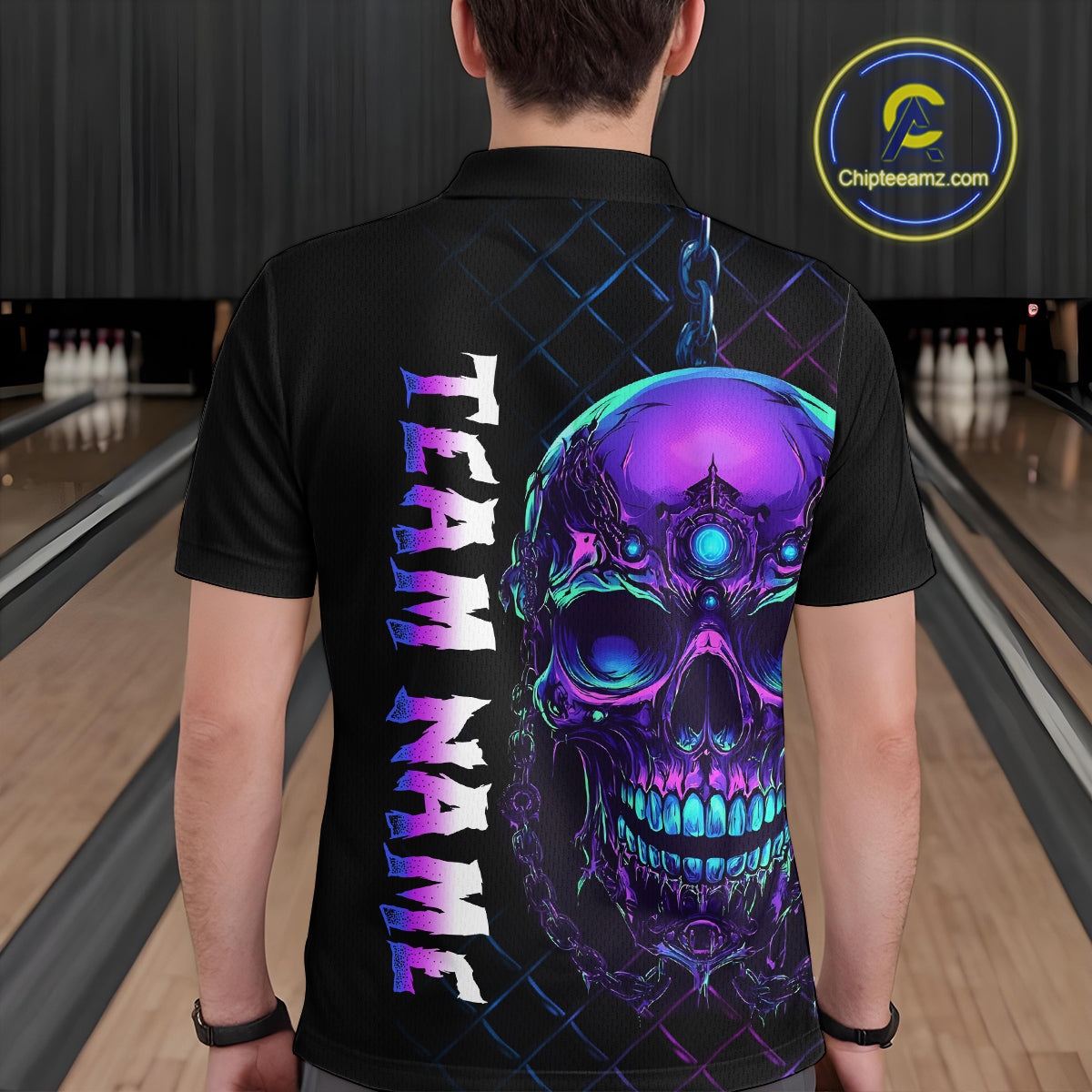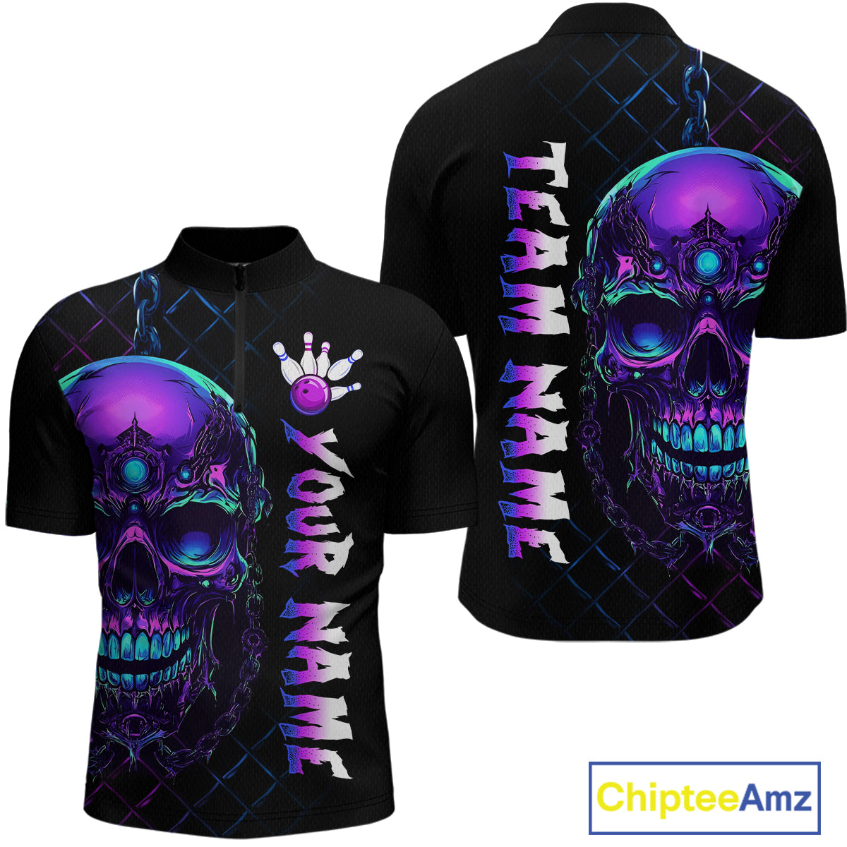 Purple Skull Bowling Custom Men Bowling Shirt Polo & Quarter-Zip Bowling Team Jerseys HNT51
