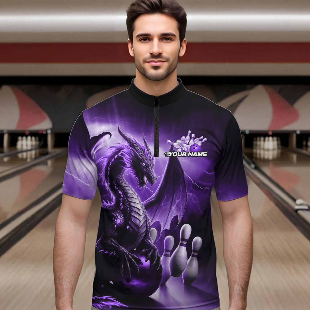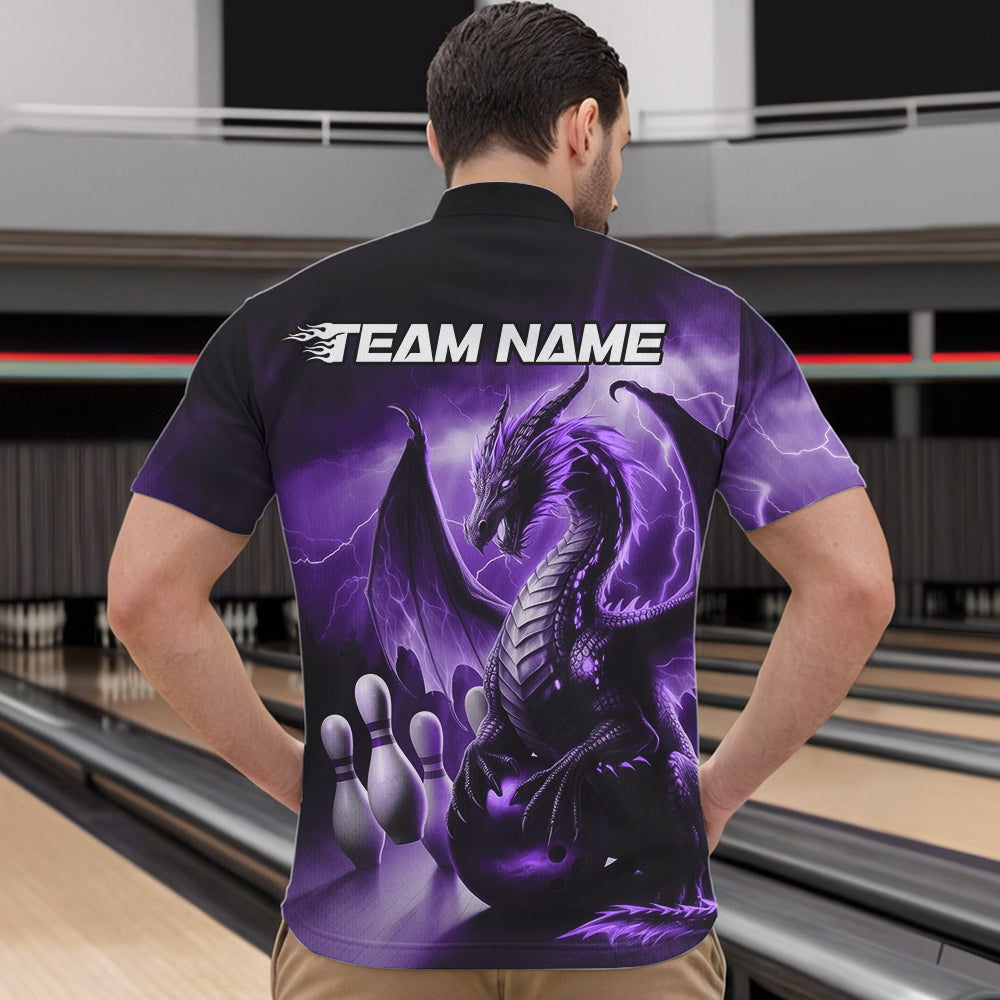 Custom Purple Thunder Lightning Dragon Bowling Quarter-Zip Shirts For Men, Bowling Team Uniform IPHW8951