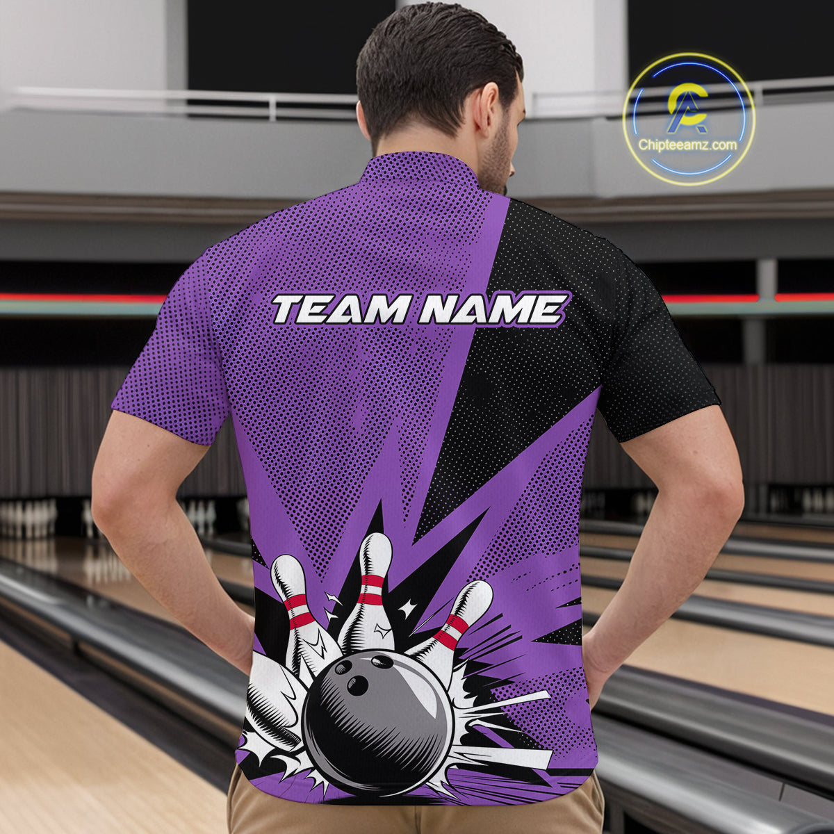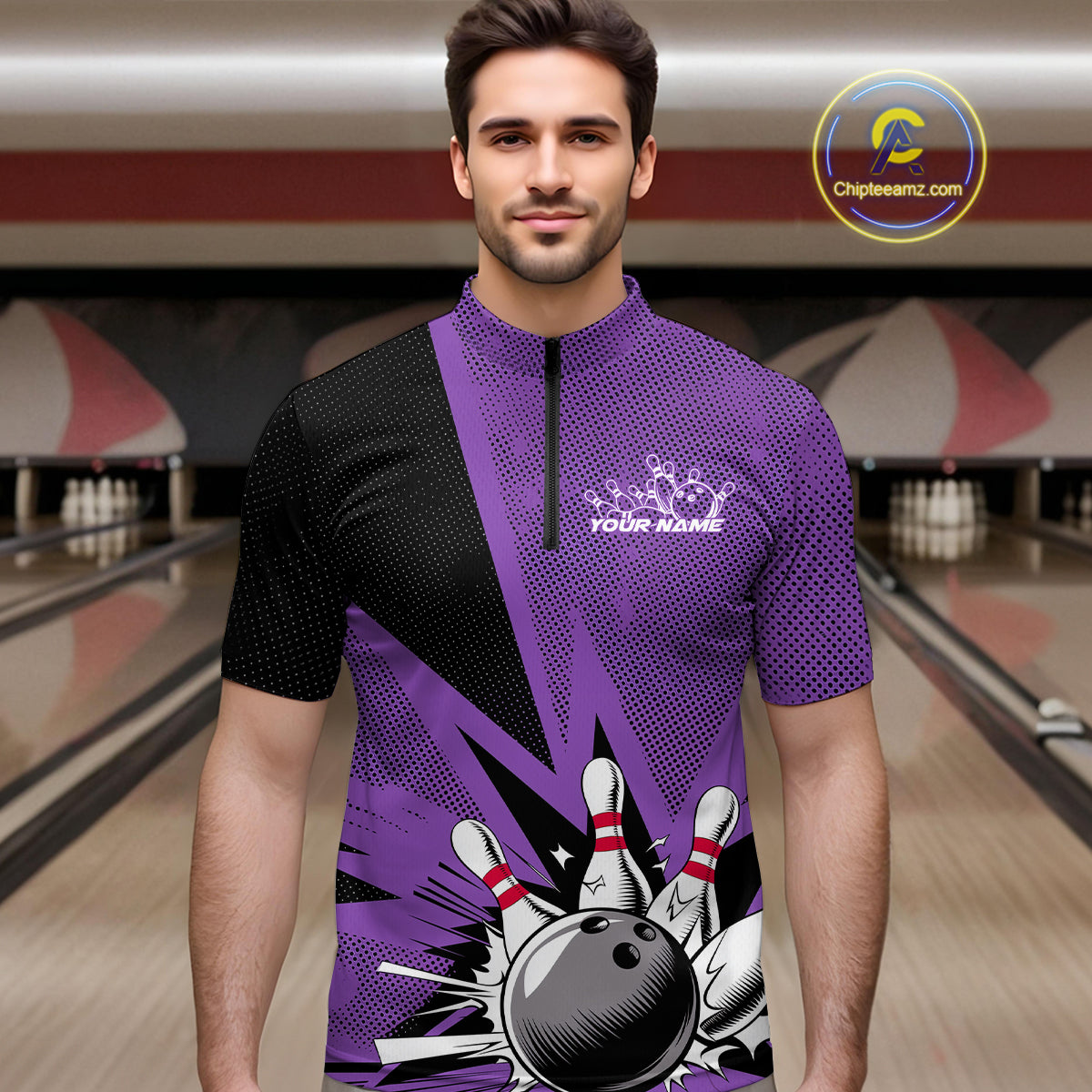 Custom Purple Bowling Jerseys, Bowling Team Men Quarter-Zip Shirts Bowling League Shirt IPHW9391