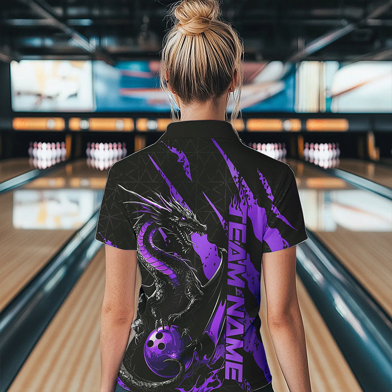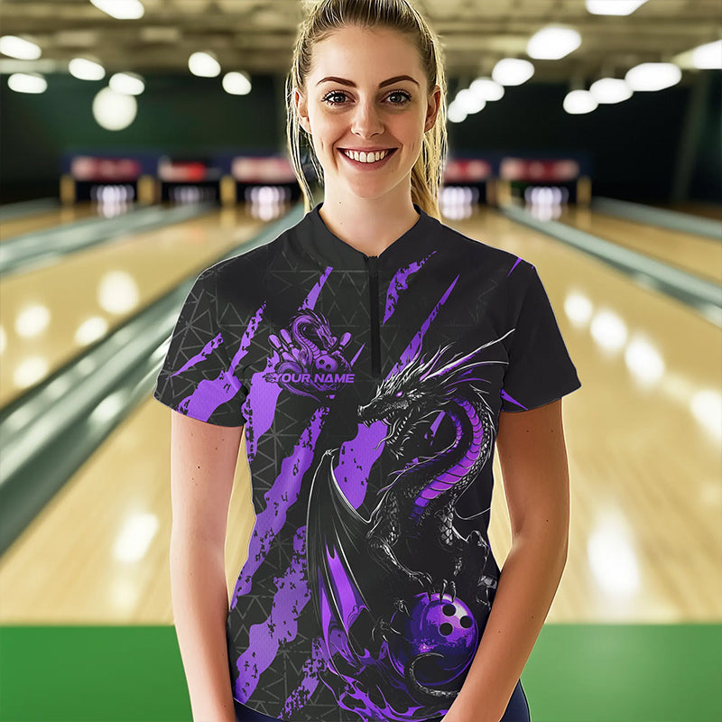 Custom Black And Purple Dragon Bowling Team Womens Quarter-Zip Shirt, Dragon Bowling Jersey IPHW8926
