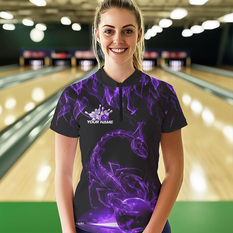 Custom Black Purple Flame Scorpio Zodiac Bowling Women Quarter-Zip Shirt IPHW8971