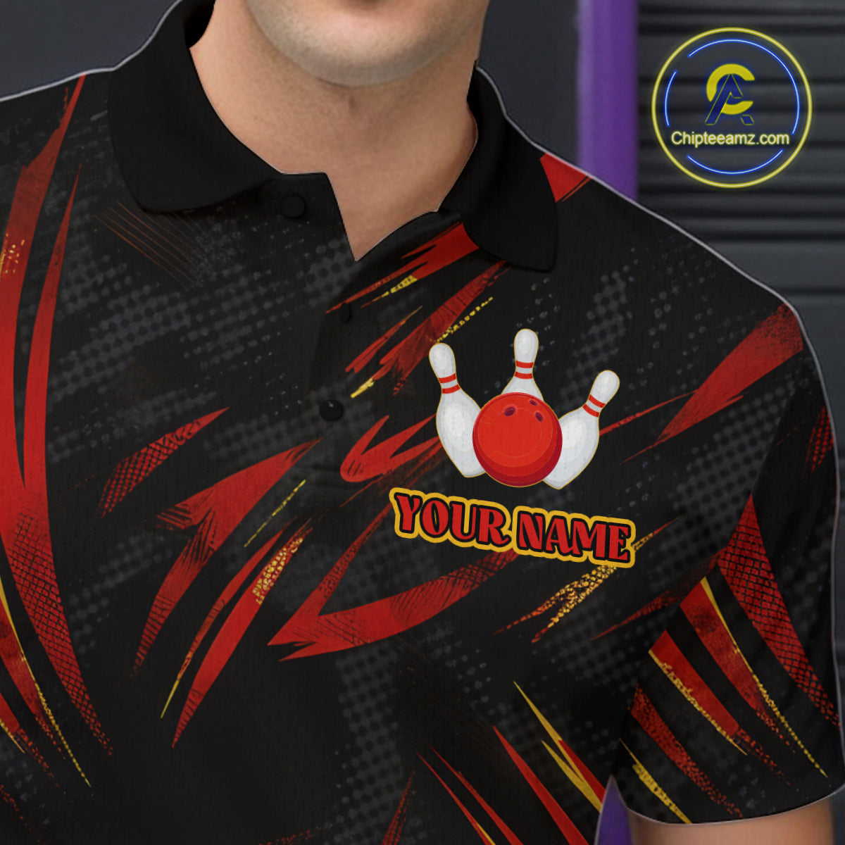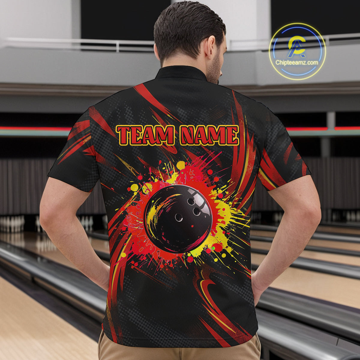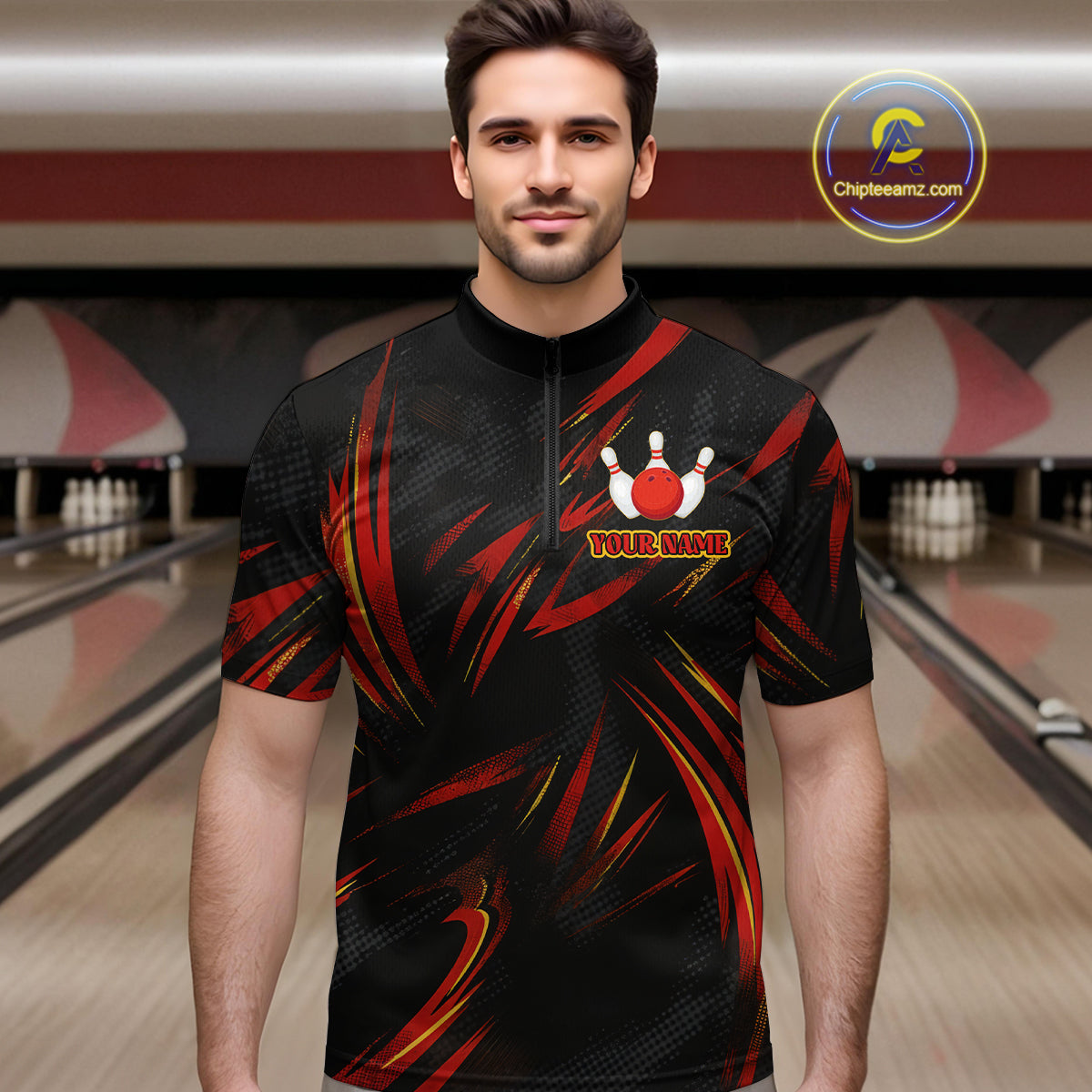 Black and Red Camo Mens Bowling Polo, Quarter Zip shirts custom Bowler Outfits bowling team jerseys NQS10155