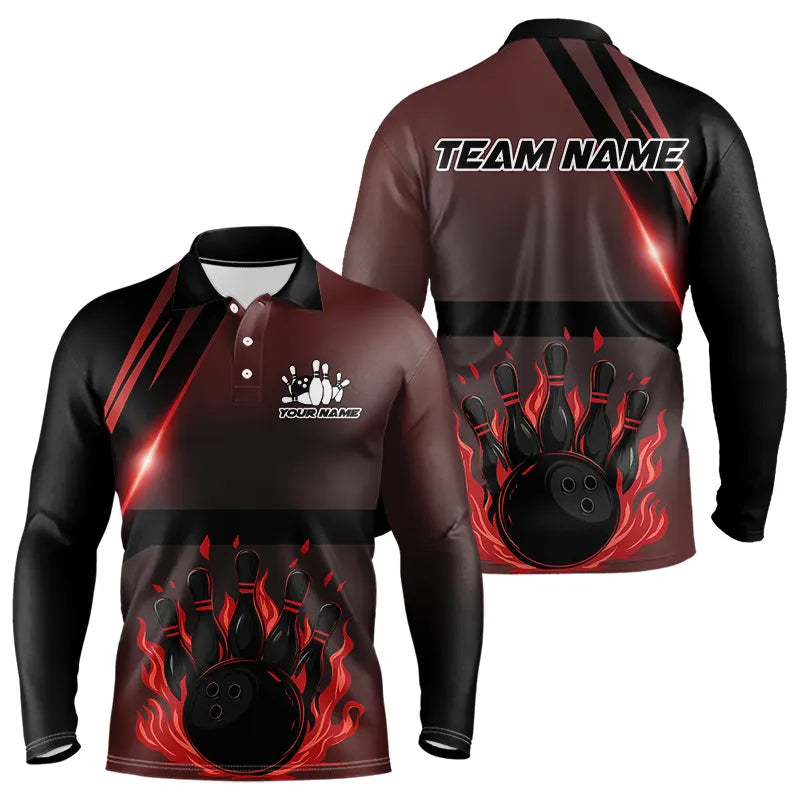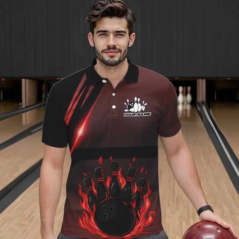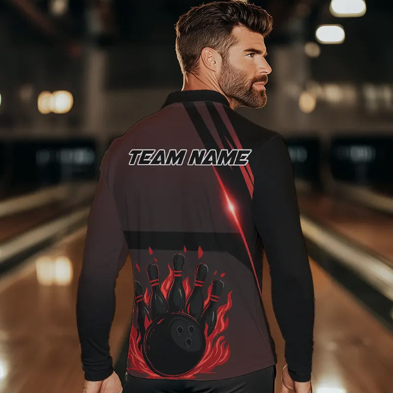 Black And Red Flame Bowling Ball and pins Bowling Shirts For Men Custom Team Bowling Jerseys NQS9387