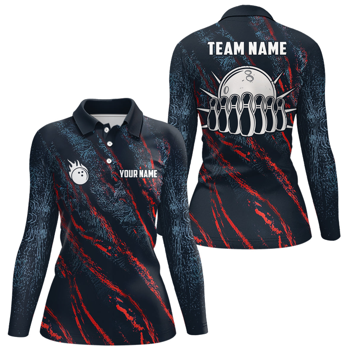Blue and red camo bowling ball and pins jerseys Custom Team League Bowling Polo Shirts For Women NQS6554