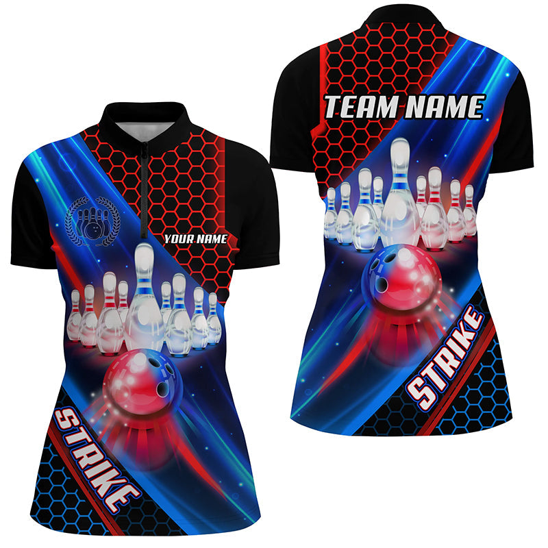Blue and Red Light Strike Bowling Ball pins Bowling shirts for Women custom Team bowling jerseys NQS8733